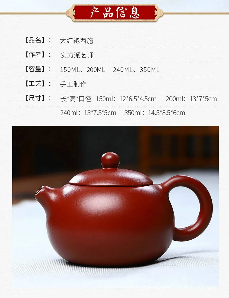 250ML Yixing Purple Clay Teapot Machine-made Xishi Tea Pot Raw Ore Dahongpao Quality Teaware Oolong Pu're Tea Set Filter Kettle