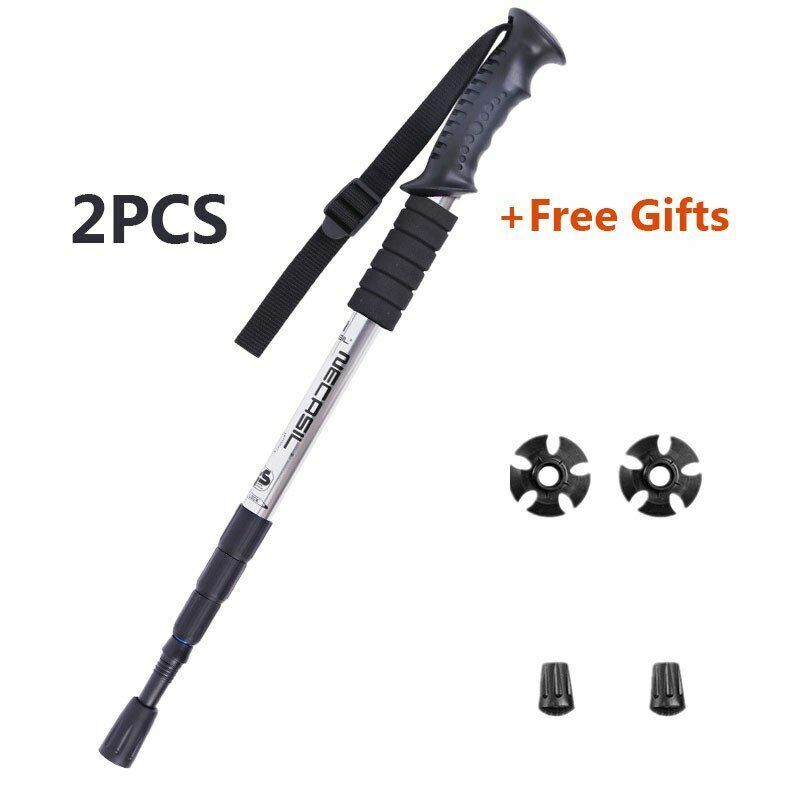 2Pcs Walking Sticks 4 Joints Telescopic Trekking Climbing Hiking Walking Rubber