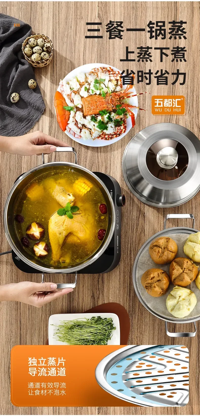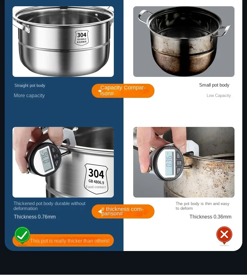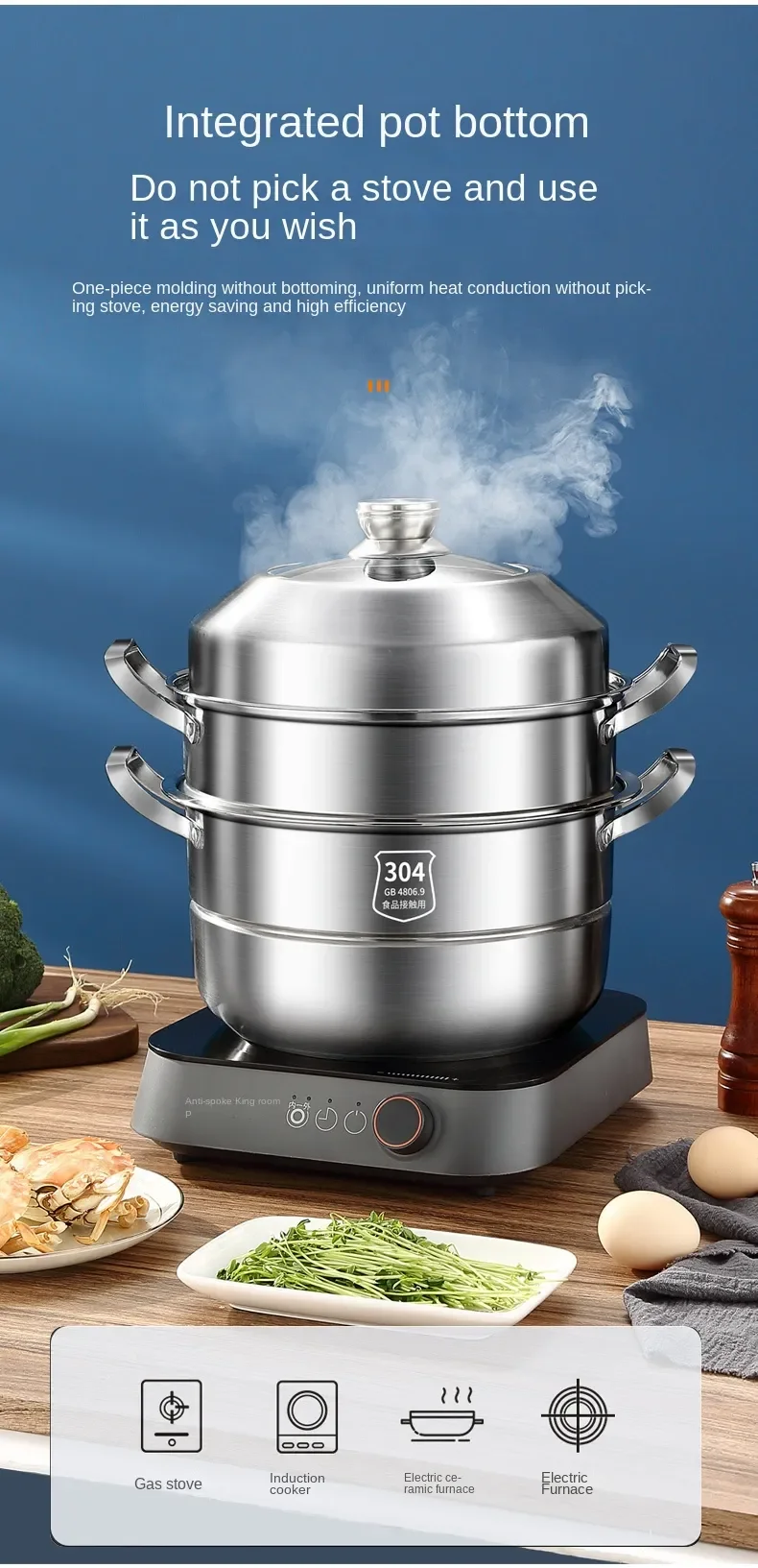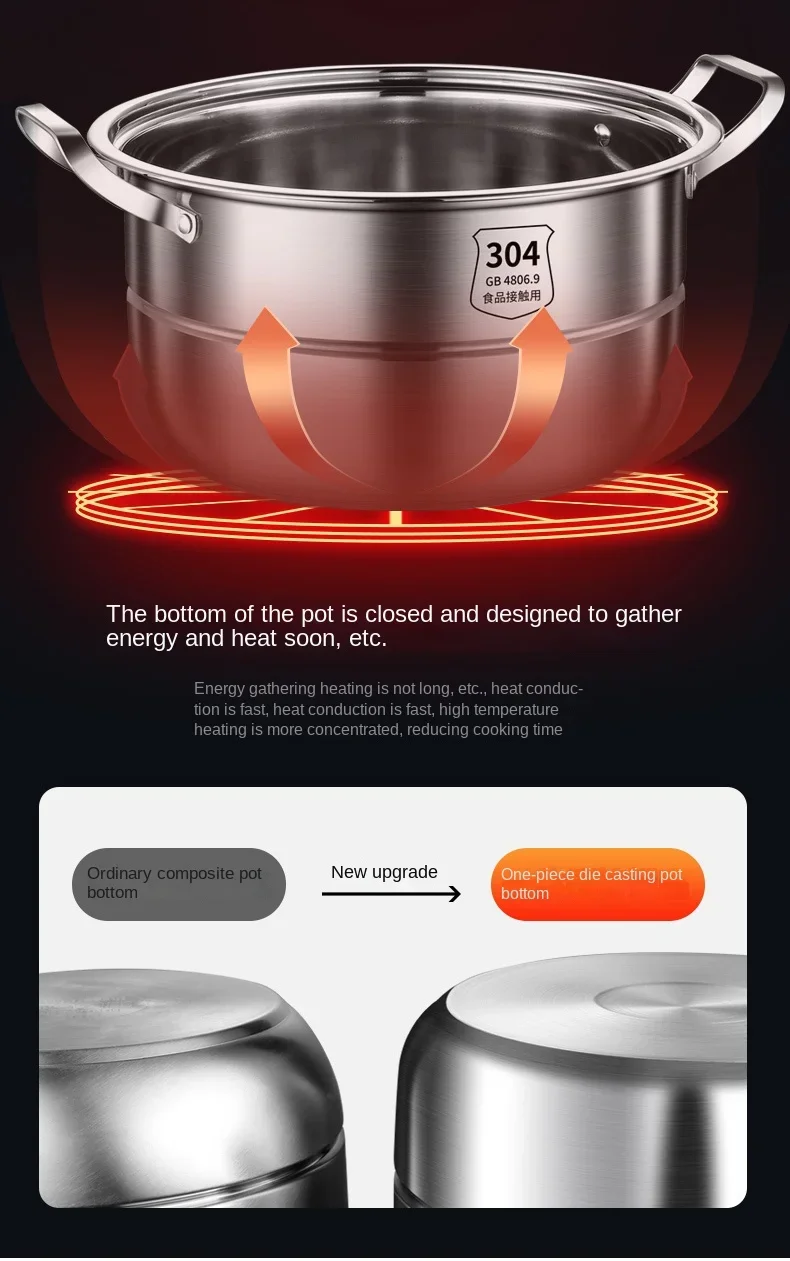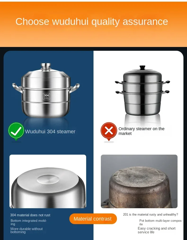 304 Stainless Steel Steamer Thickened Three-Tier Steamer Steamed Buns Household Cage Drawer 2-Layer Double-Layer Induction