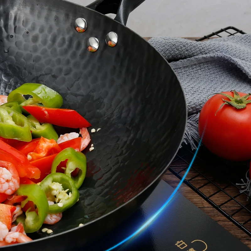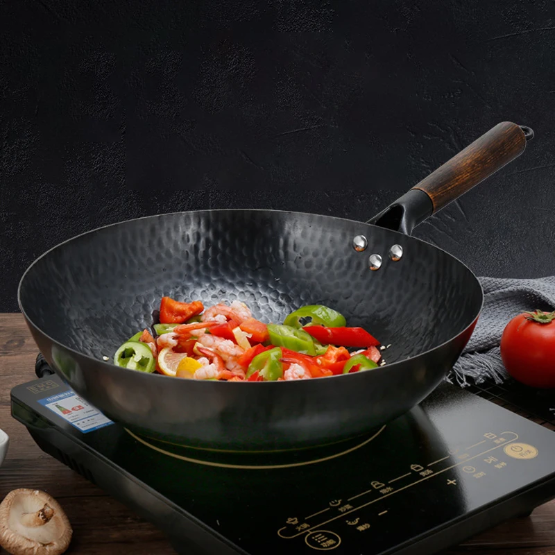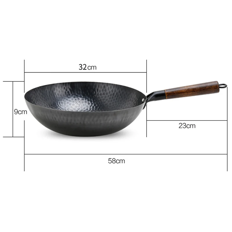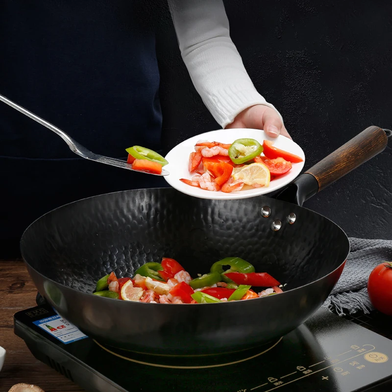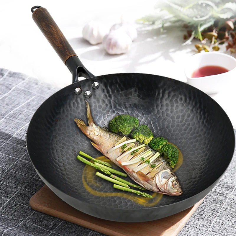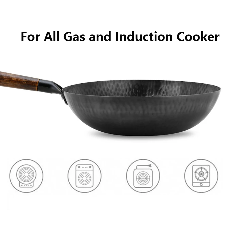 32cm Non Stick Iron Wok Flat Bottom Cooking Pan without Lid Stir Fry Skillet for All Stoves Kitchen Accessories
