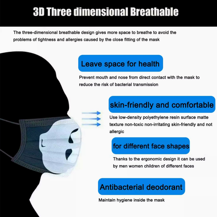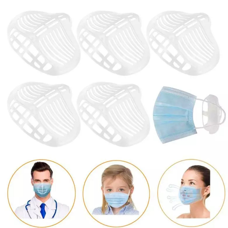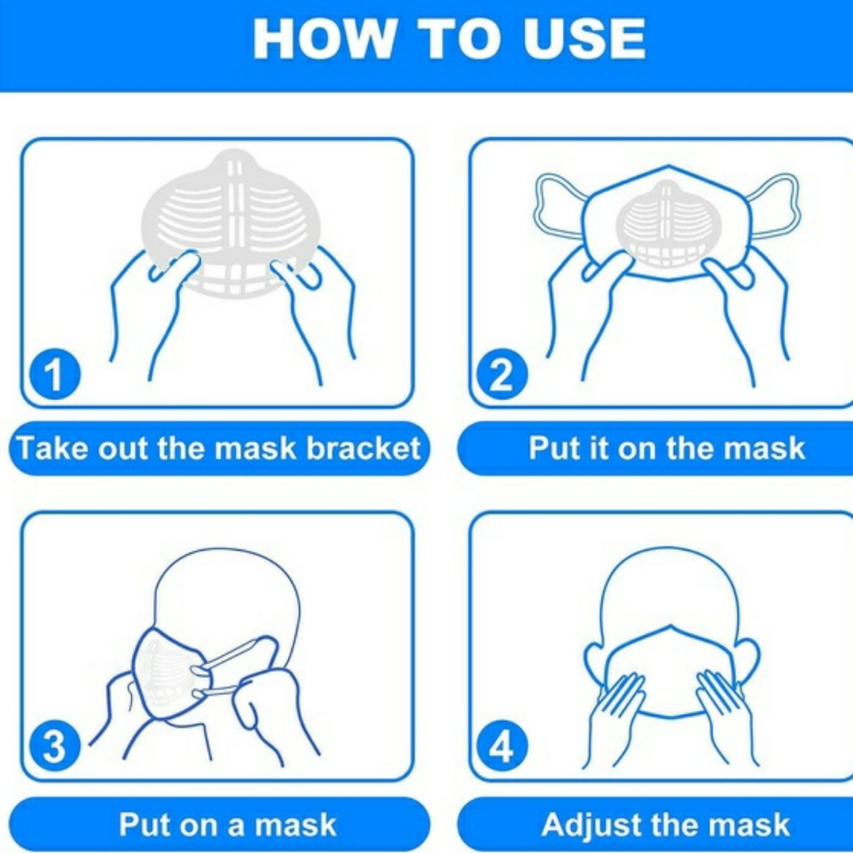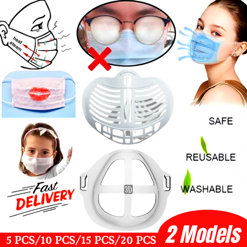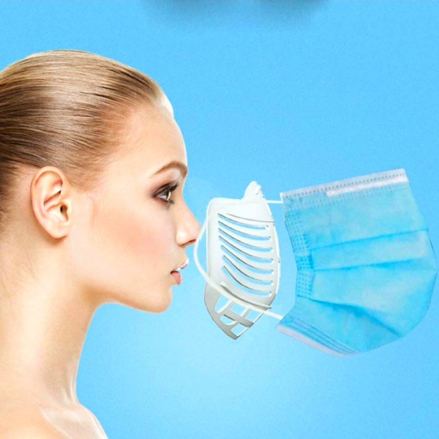 Features: 1.Easy to Breathing - It holds up the mask fabric around the mouth to create more breathing space when a mask is put on face. 2.Cleaner for Wearing - The bracket reduces the friction frequency between mask and face to protect the lining from getting stained. 3.Lipstick Protection - It makes the mask not to stick lipstick, protecting your perfect makeup from being messed up.n face. 4.Washable and Reusable - Food grade silicone material is safe, washable and reusable.