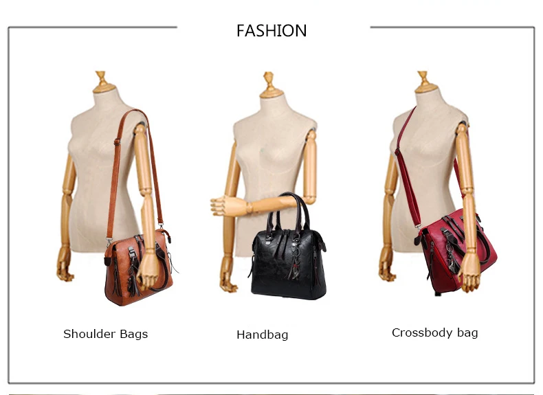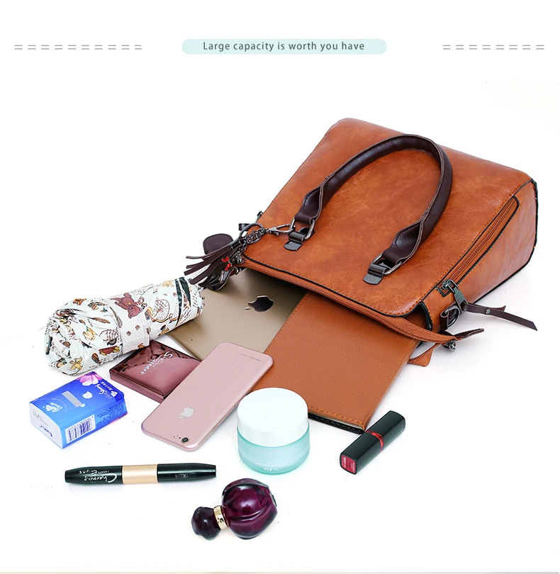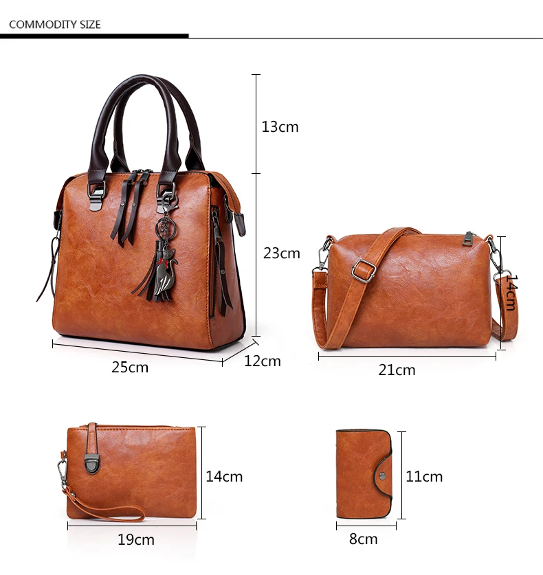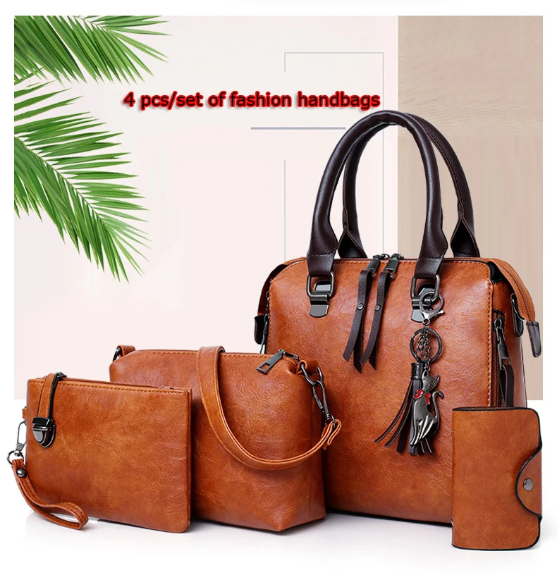 4pcs/set wax oil leather Shoulder Bags for women 2024 handbag purse designer handbags Tassels lhigh quality woman bag sac a main