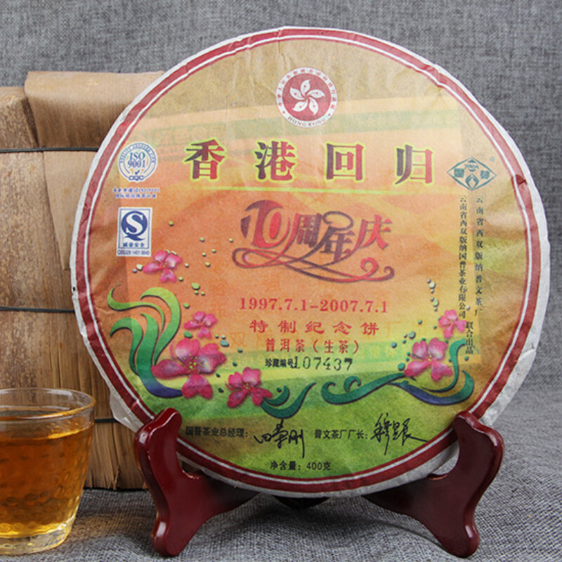 PRICE: The price is for 400g /Pc ONLY Sheng puer tea "10th year Anniversary of Hong Kong's returning back", in a shape of pancake, weight 400 grams by Puwen factory. Produced in 2007 year.