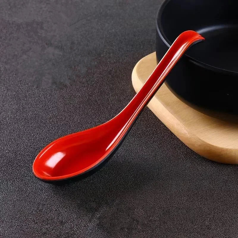 This Commercial Quality Black/Red Melamine Soup Spoon is Great for Restaurant or Home