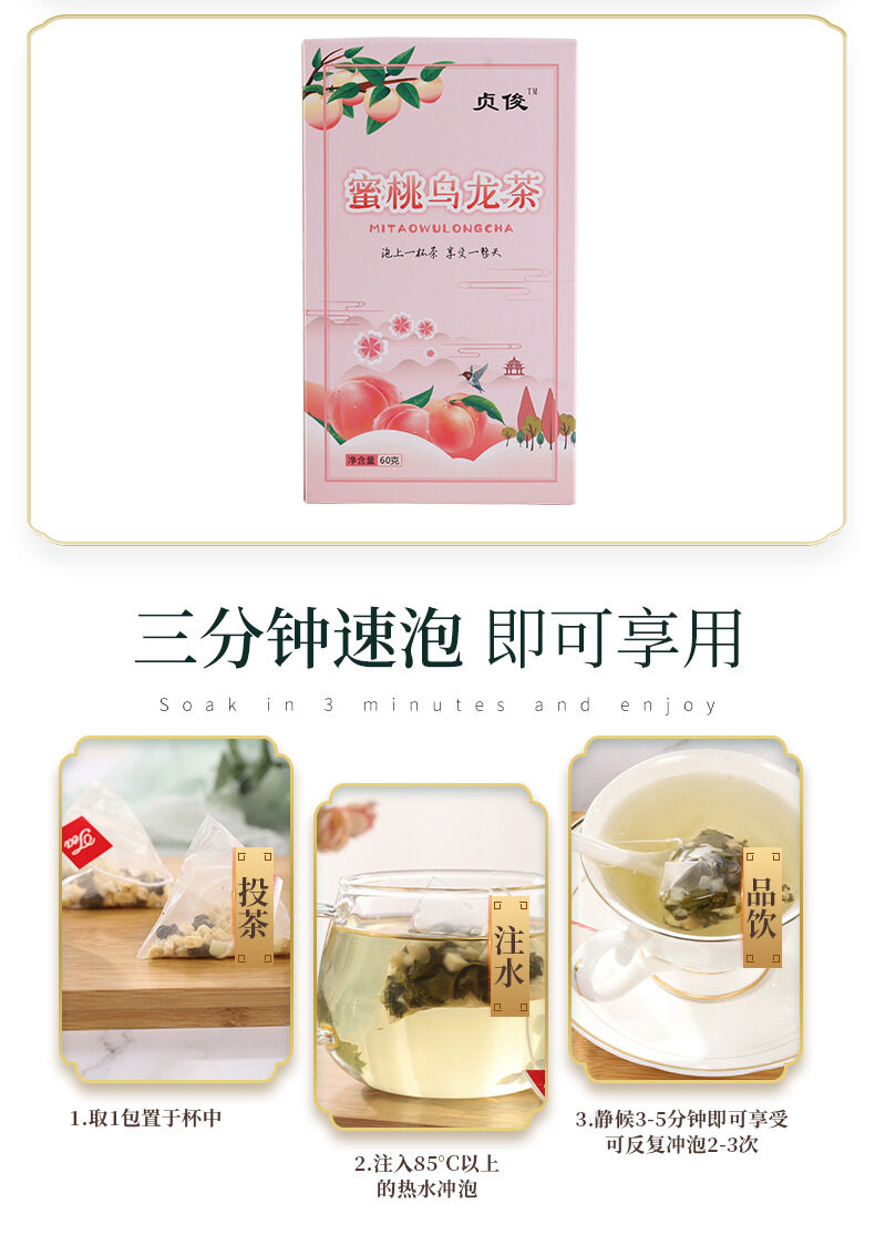 60g Honey Peach Flavored Oolong Tea Bag Herbal Tea Chinese Triangle Bags Package