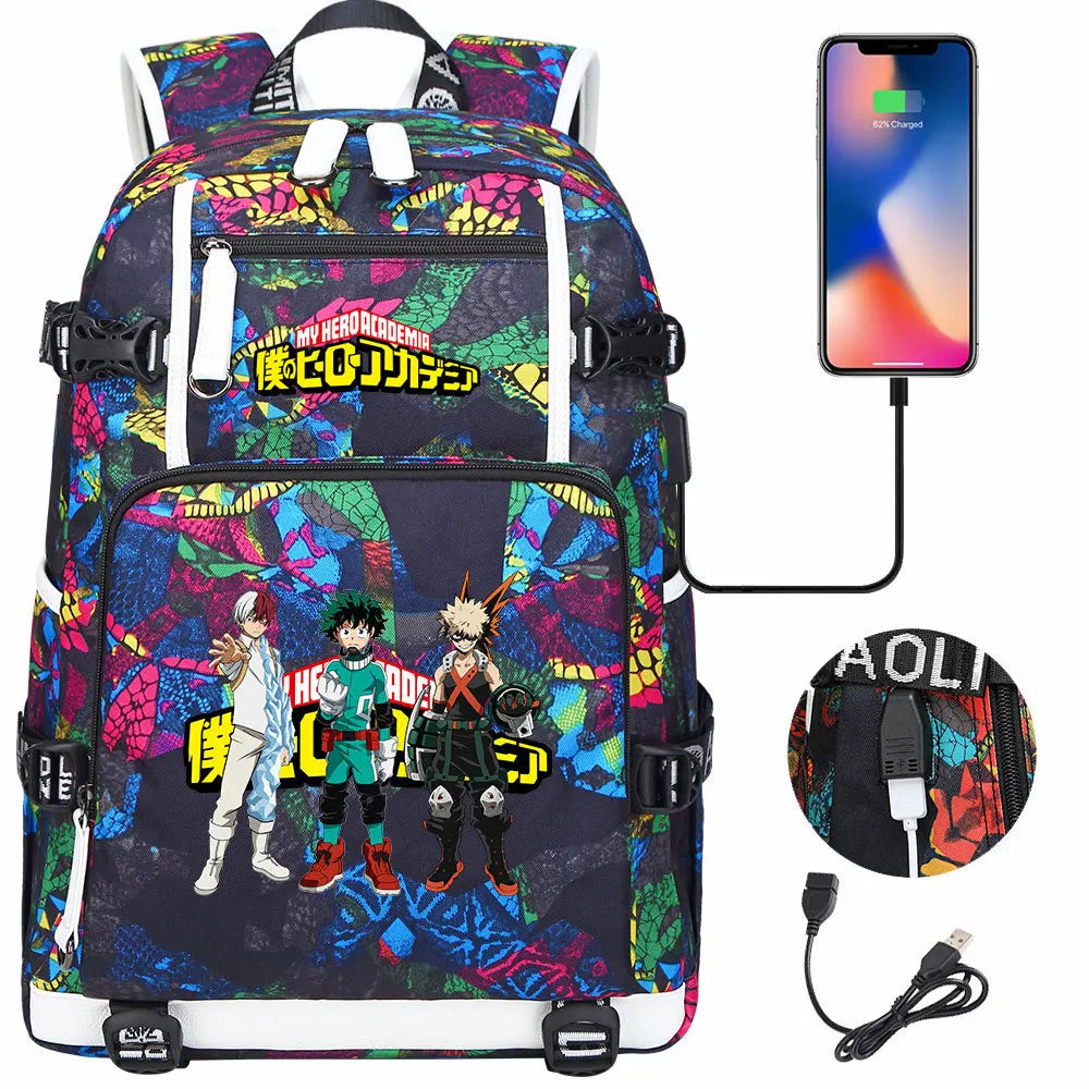 Anime My Hero Academia USB Boy Girl Kids Book School Bags Large Capacity Teenagers Schoolbags Women Men Travel Laptop Backpack