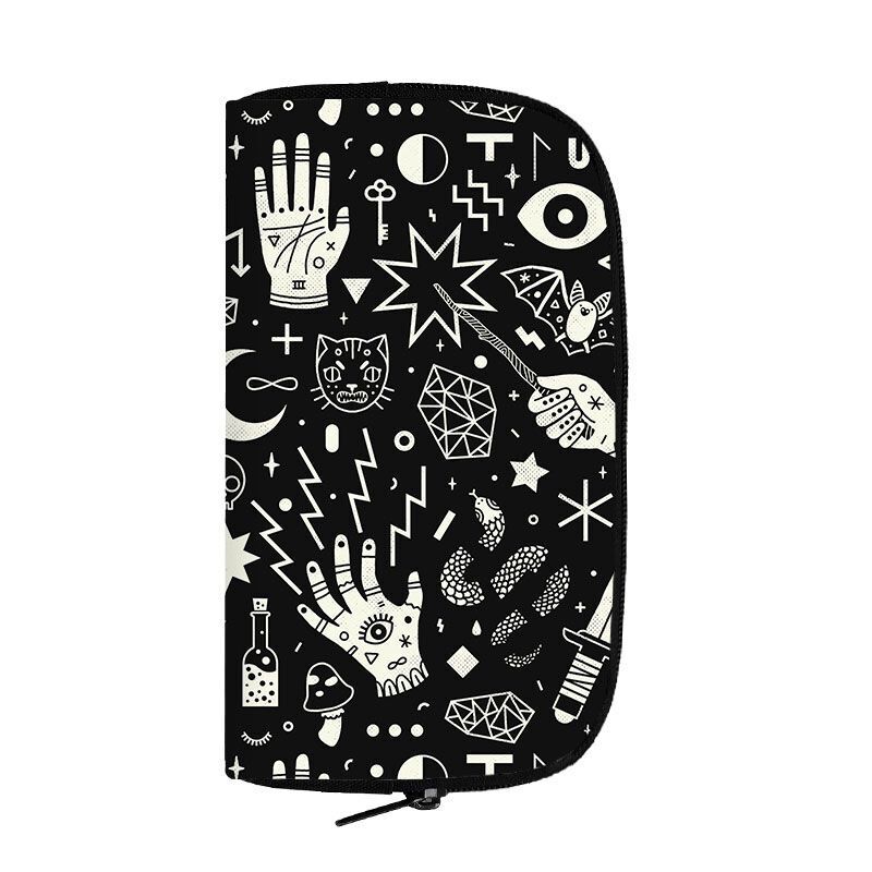 Black Long Wallet Witchcraft Skull Gothic Purse Passport Bag Phone Coin Purses