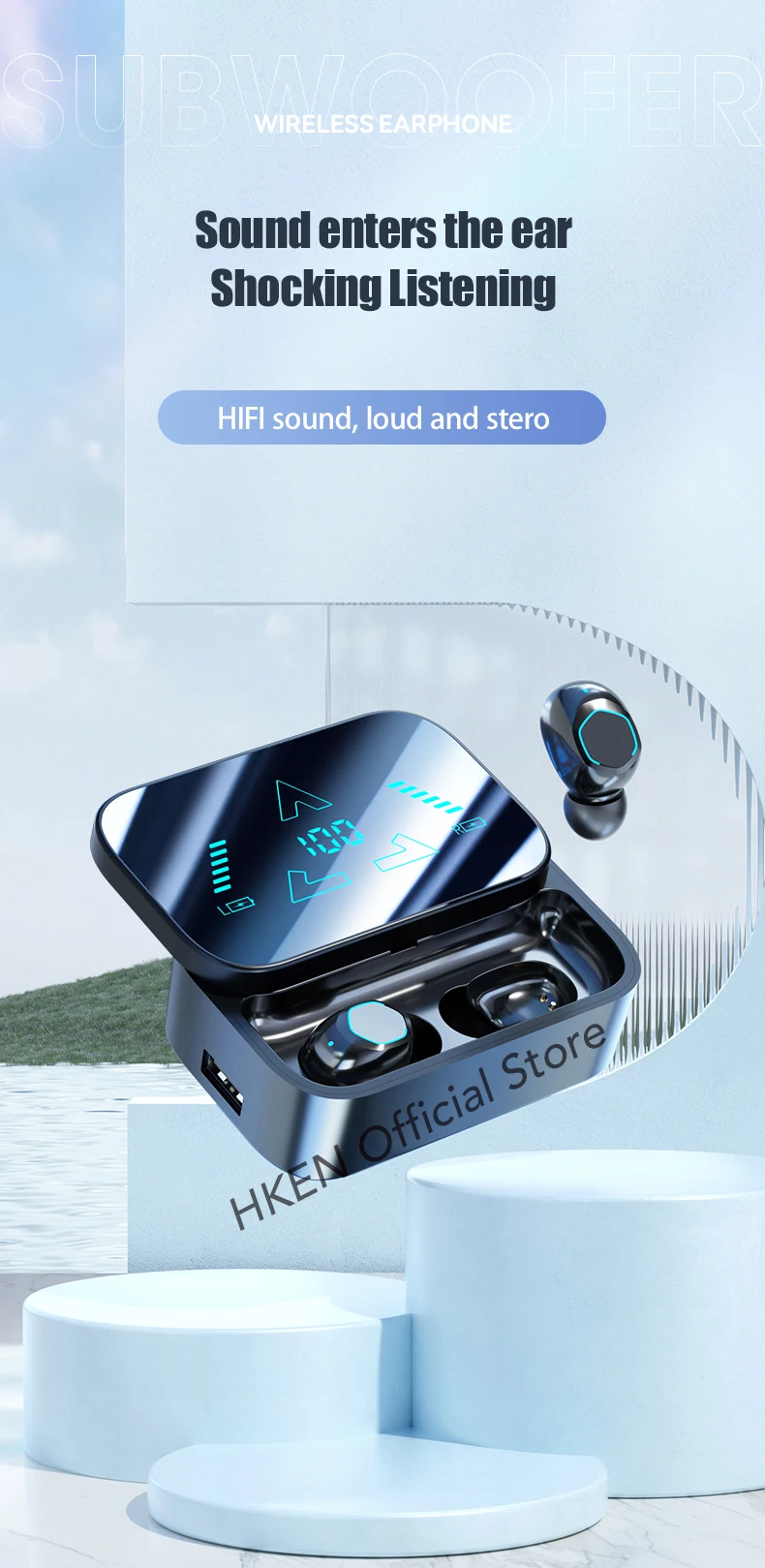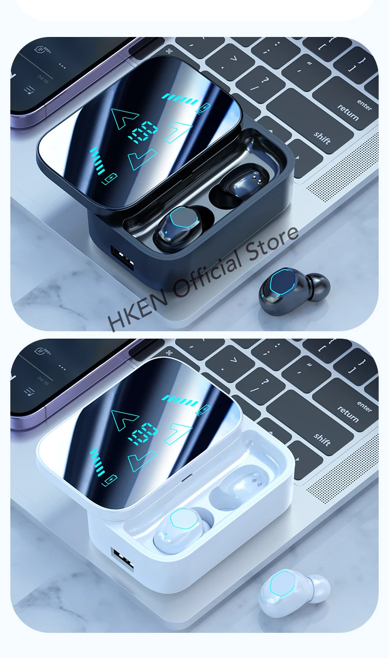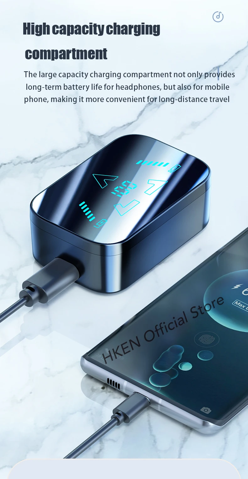 5 Hours of Playtime - LED digital display for easy power management, 2000mAh large Bluetooth headphones charging case provides up to 5 full charges for two true wireless earbuds, with 4-5 hours of continuous playback per charge. Up to 30 hours of playtime by alternating the use of wireless headphones.