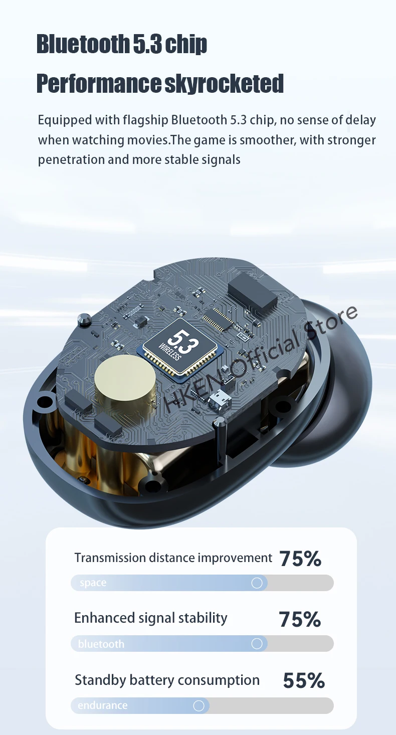 Bluetooth 5.3 chip -Equipped with flagship Bluetooth 5.3 chip, no sense of delay when watching movies.The game is smoother, with stronger penetration and more stable signals.