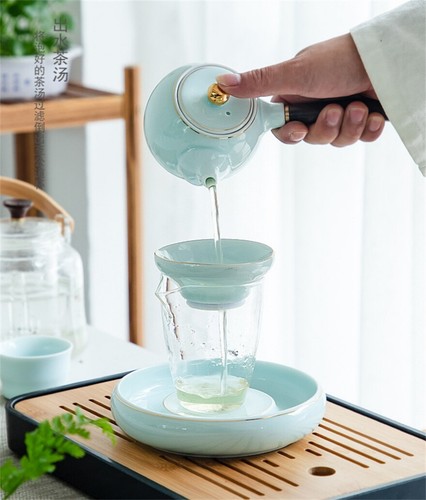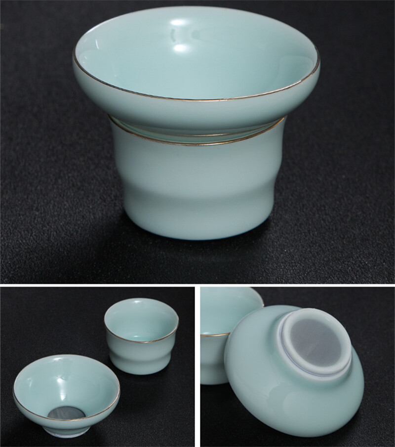 Boutique Celadon Tea Set Porcelain Tea Pot Tea Cups & Mats Pitcher Tea Strainer