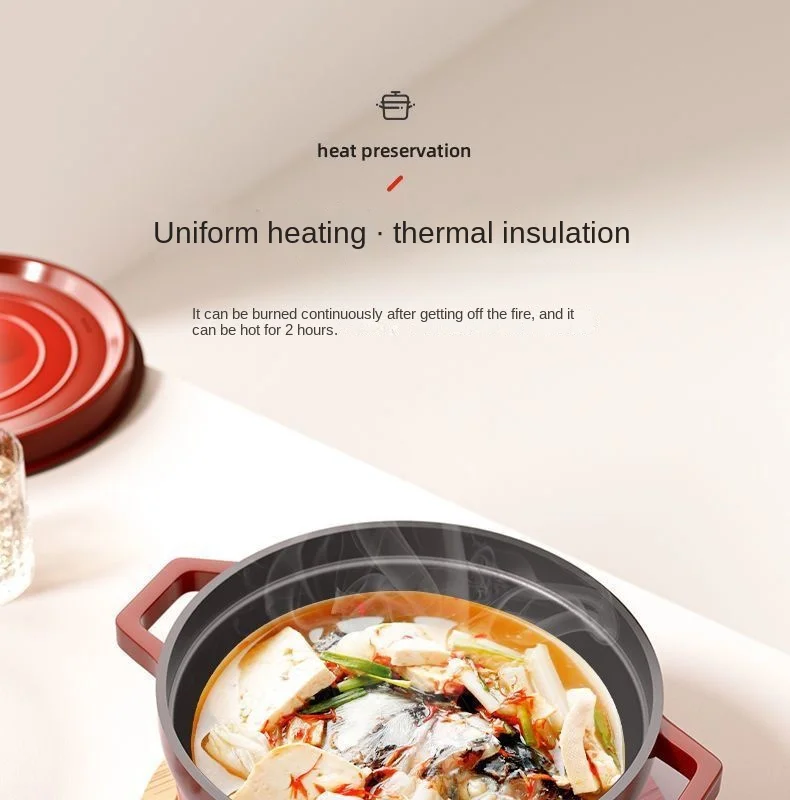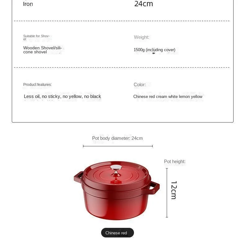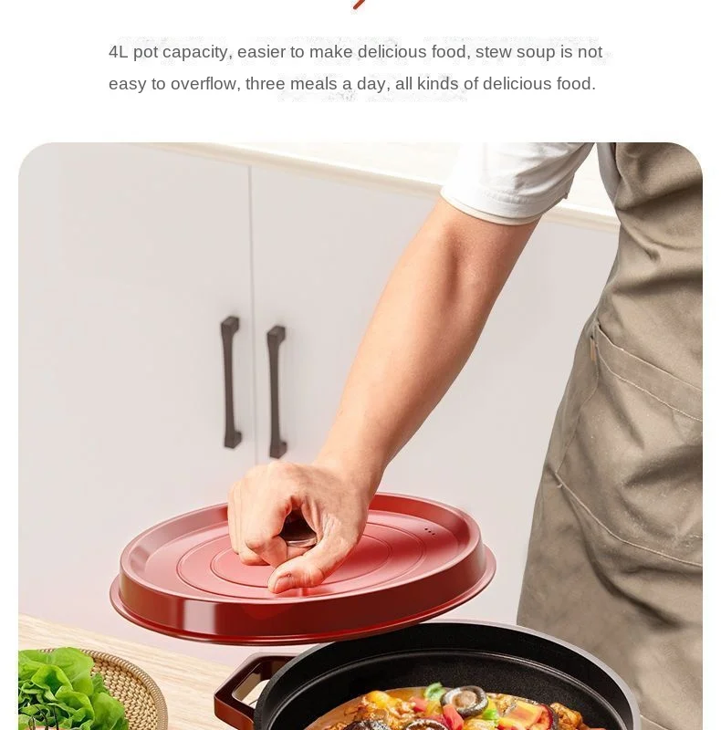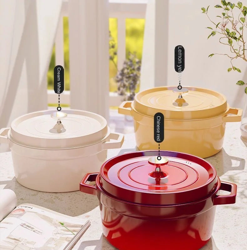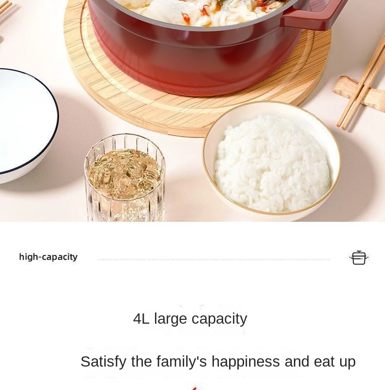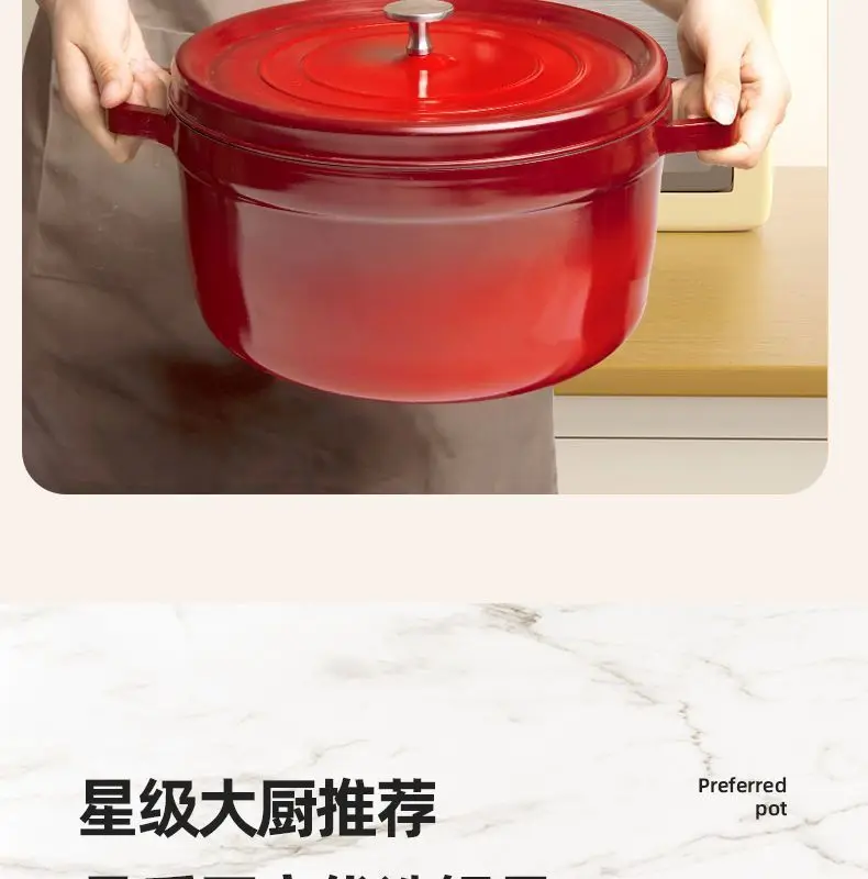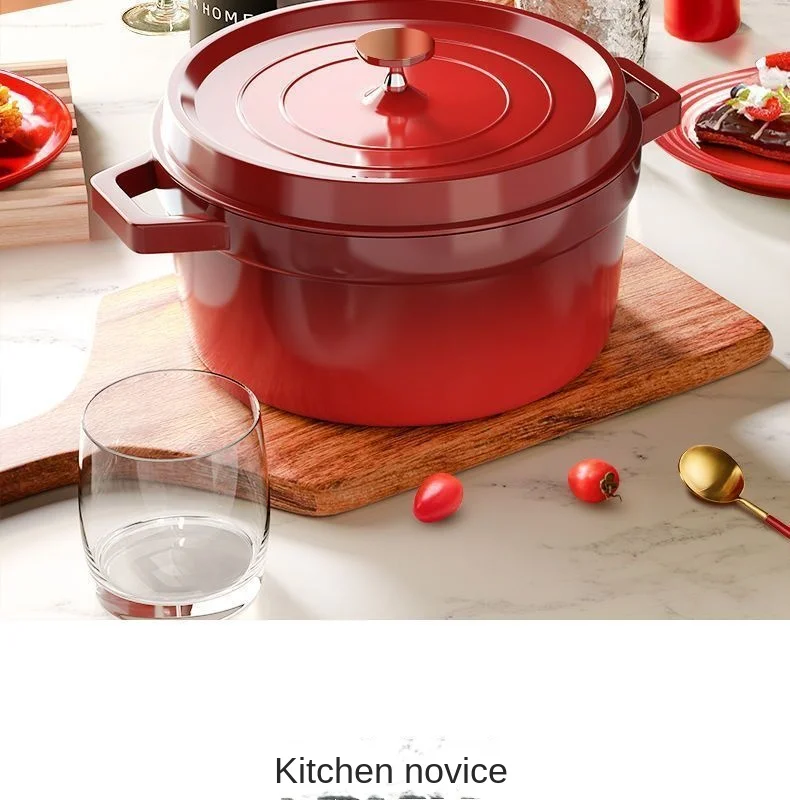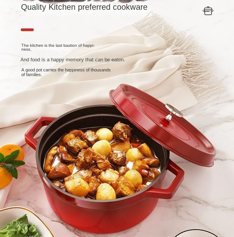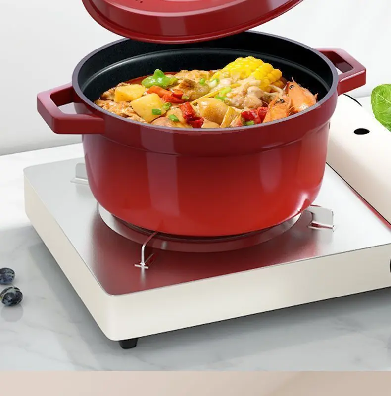 Cast Iron Soup Pot with Lid, Heavy Duty Stock Pot for Perfect Cooking and Stew, Non-Stick Interior, 4 Quart Red