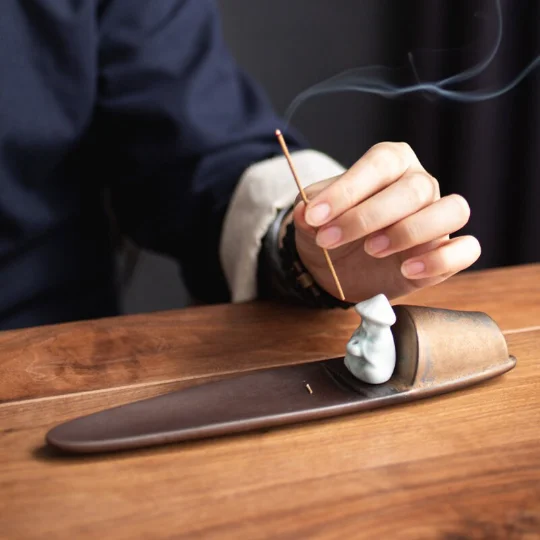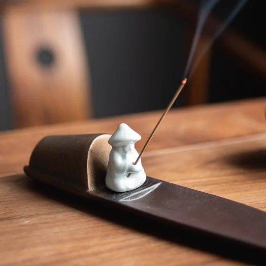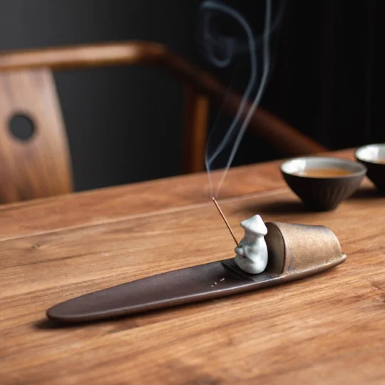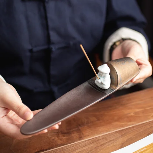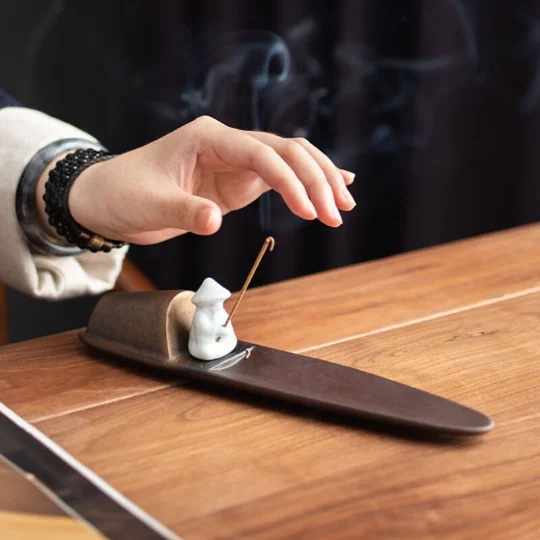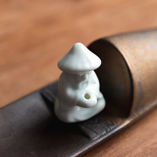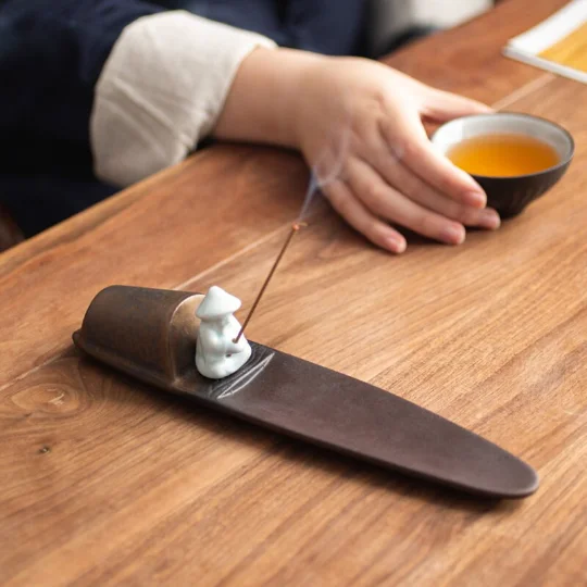 Ceramic Old Man Fishing Incense Holder for Sticks Creative Fishing Boat Ornament