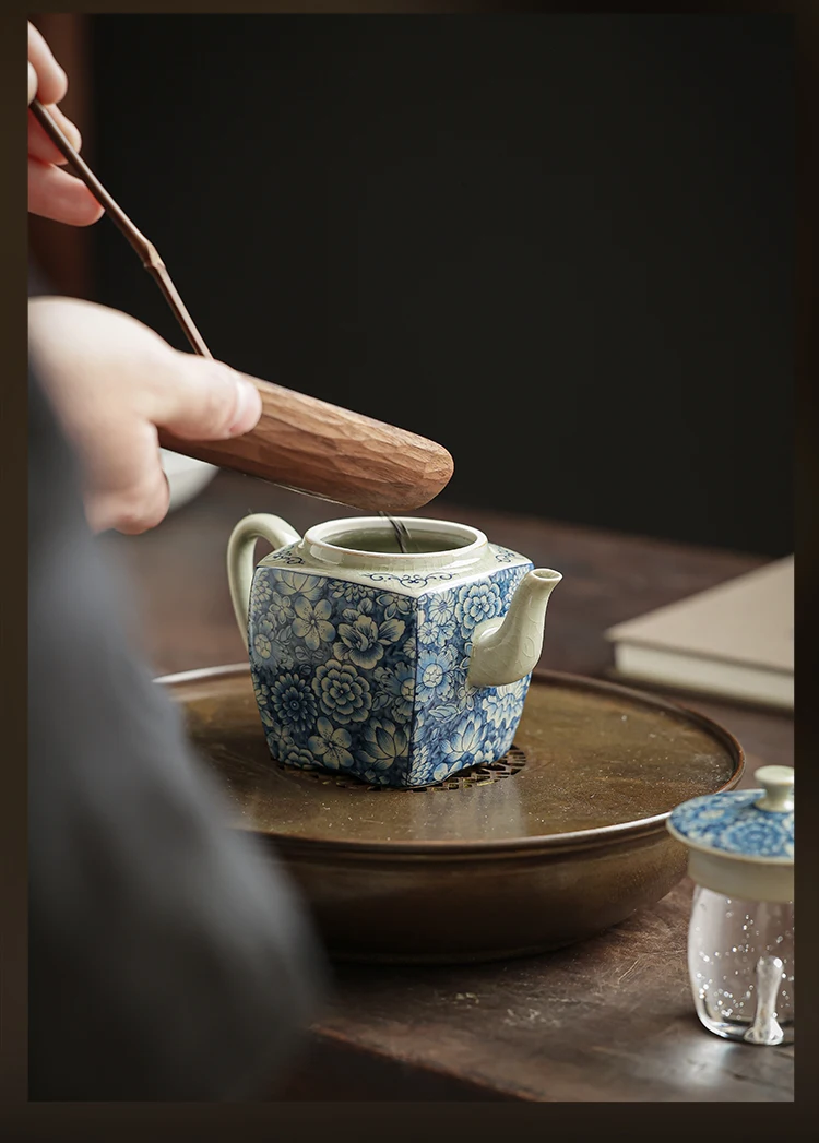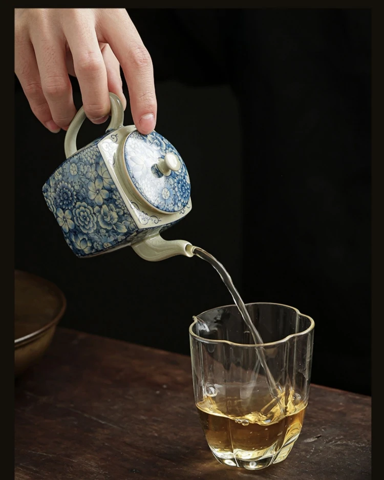 Ceramic Opening Blue and White Kettle Chinese Pottery Teapot Tea Ceremony Set Milk Oolong Tea Tie Guan Yin Jasmine Teaware Type