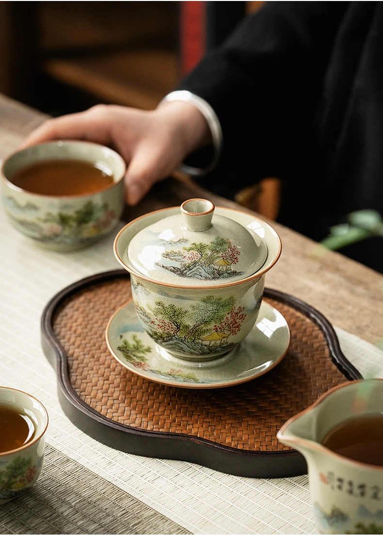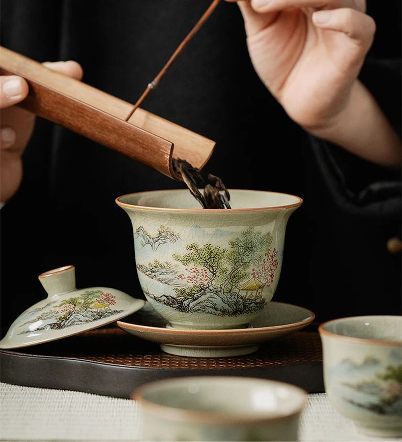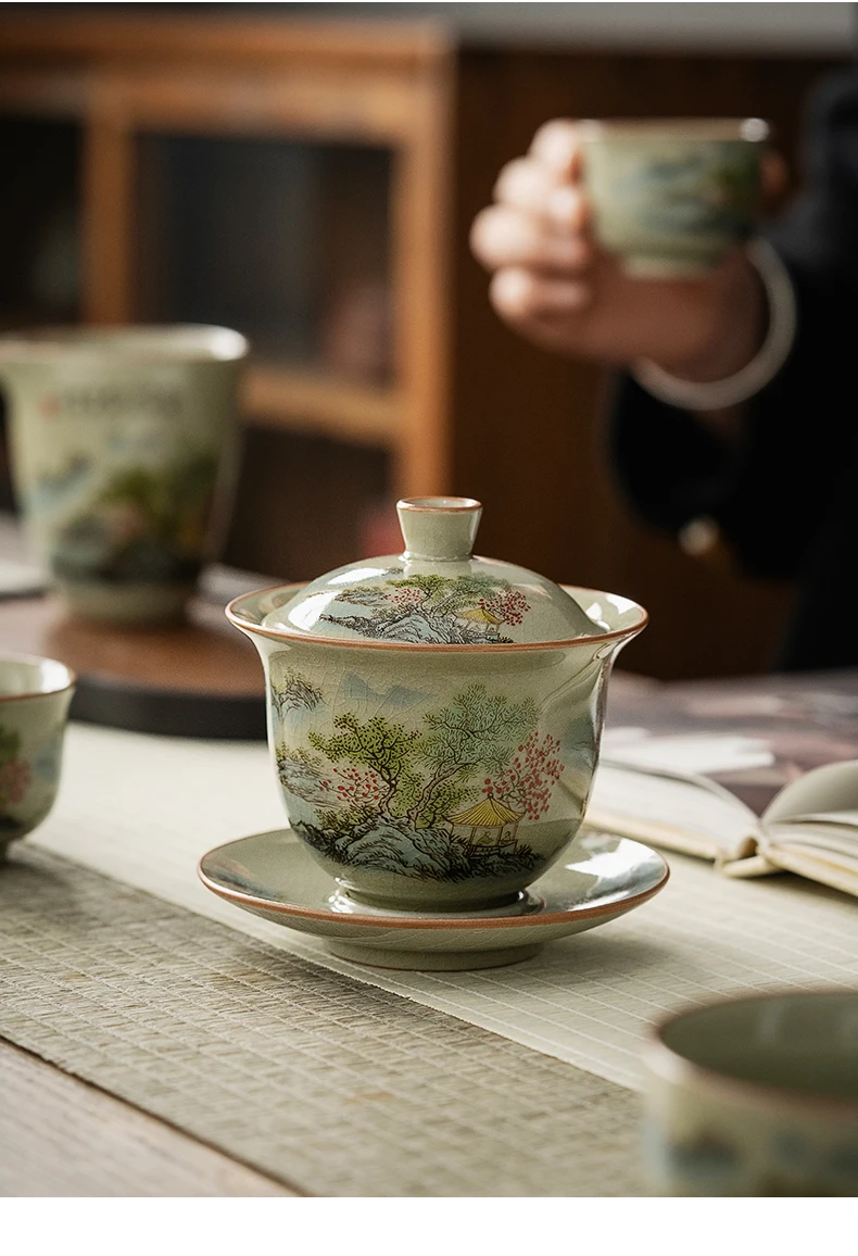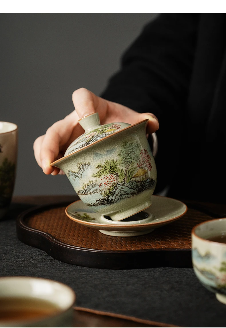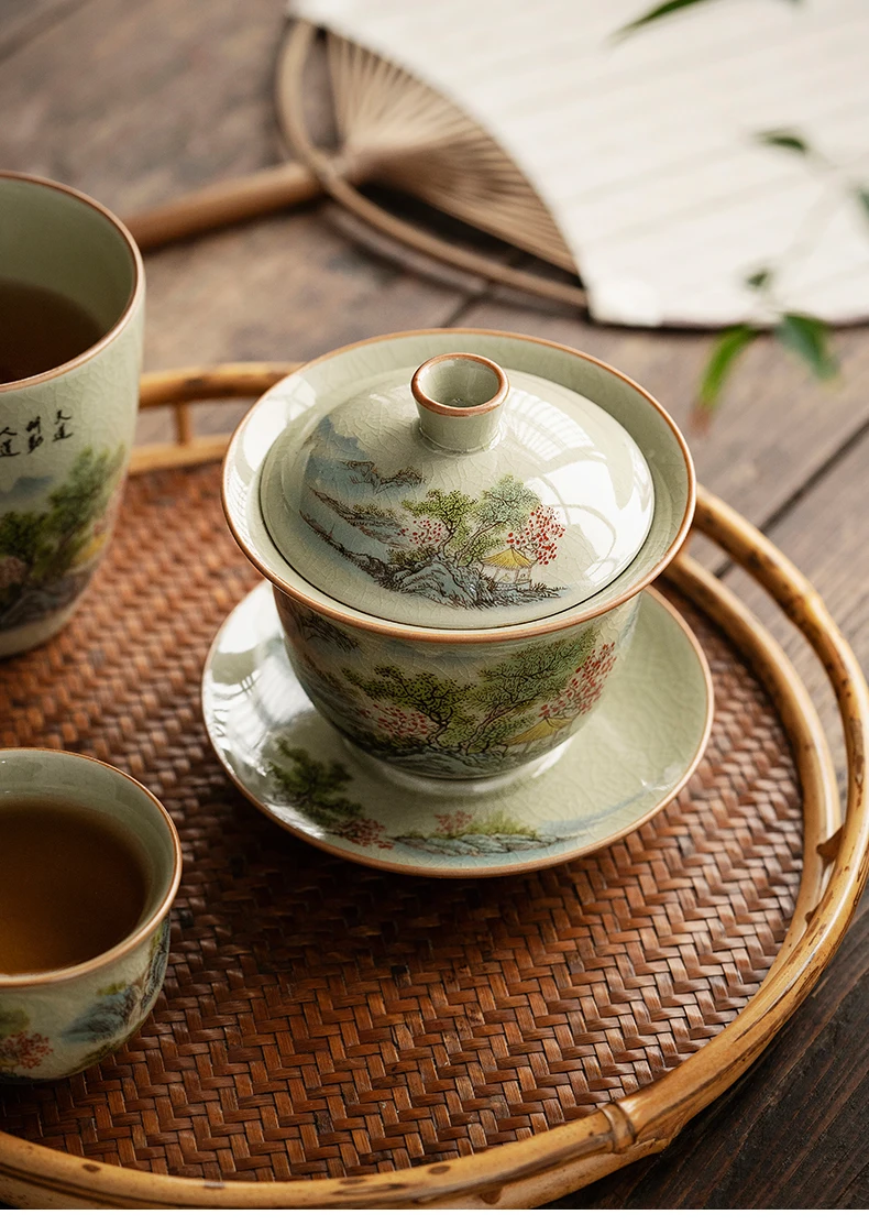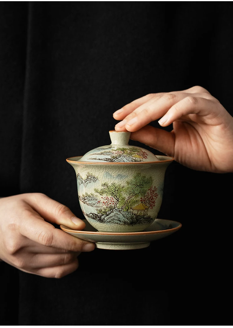 Ceramic Opening Landscape Gaiwan For Tea Ceramic Tureen Teaware Cup Chinese Tea Bowls Vintage Chawan Tea Ceramony Set