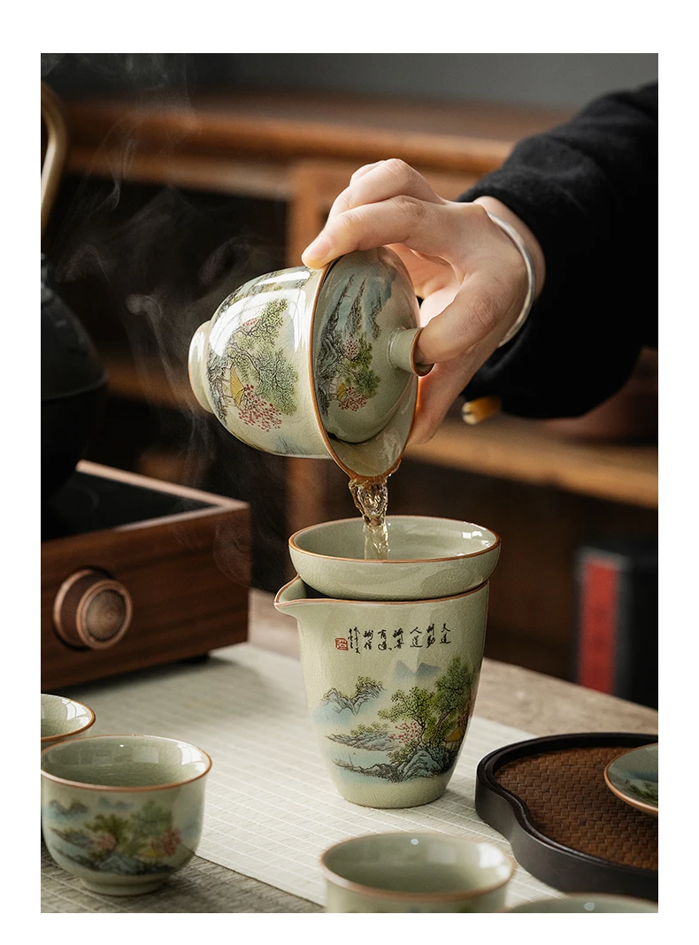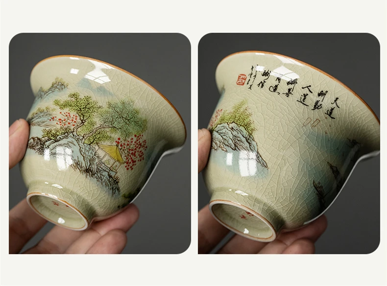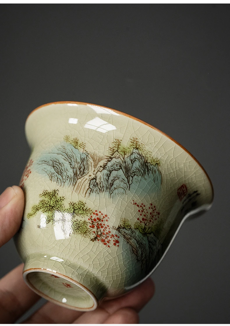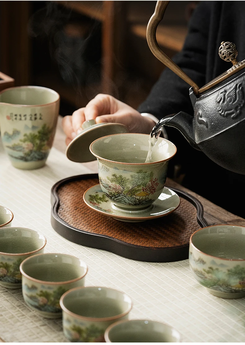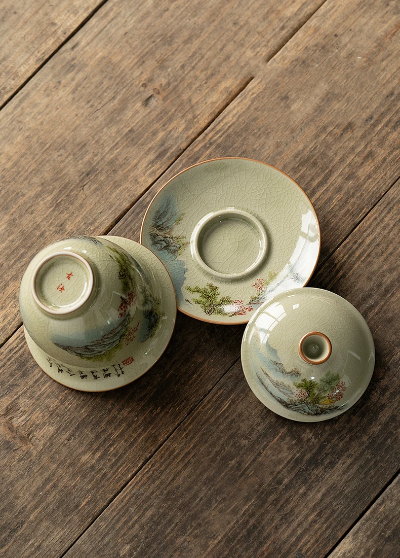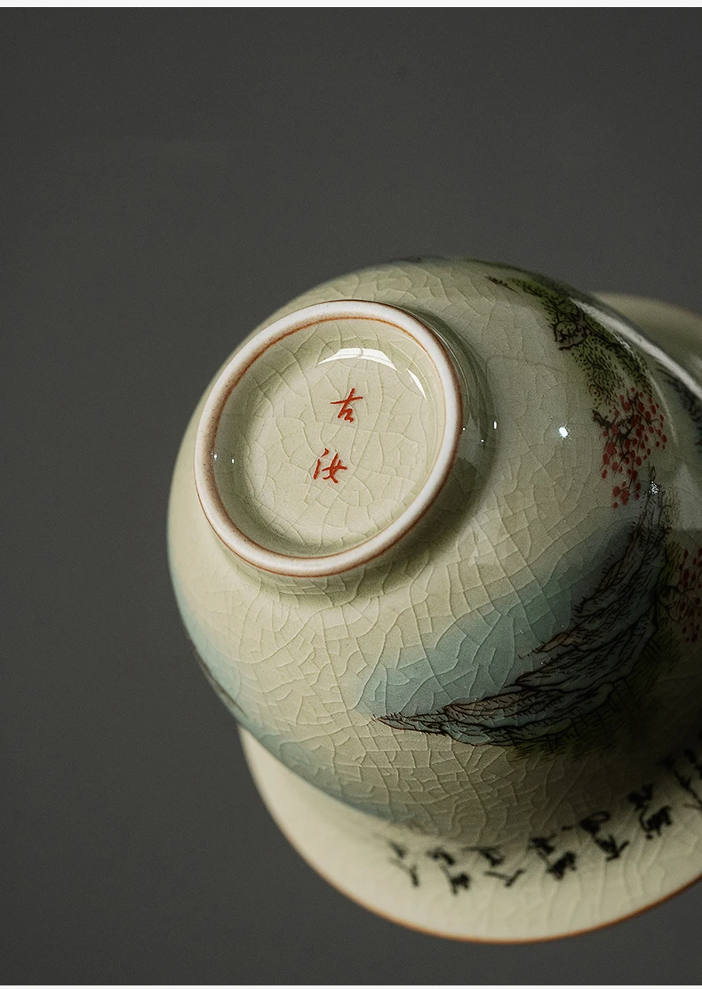 Ceramic Opening Landscape Gaiwan For Tea Ceramic Tureen Teaware Cup Chinese Tea Bowls Vintage Chawan Tea Ceramony Set