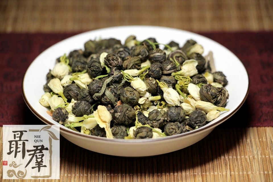 Chinese green tea "MO LI LONG ZHU" (price per 250 g).Tea "Jasmine Pearl of the Dragon" (Mo Li Long Zhu 茉莉龙珠) does not need special representations.. In the past two decades, this tea has become widely known outside of China. The production technology of “pearl of the dragon” tea is simple: tea leaves are sorted, then slightly dried in a special wok, after that jasmine flowers are added to it and then molded (rolled) into the small balls resembling pearls. Taste: soft with a natural predominance of jasmine and herbal light tint.