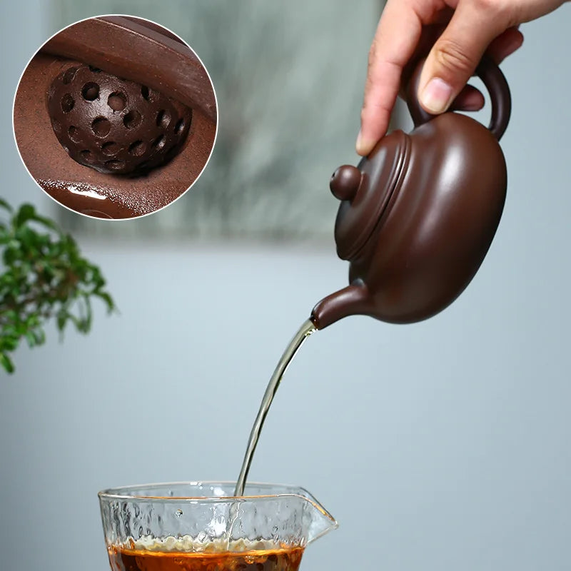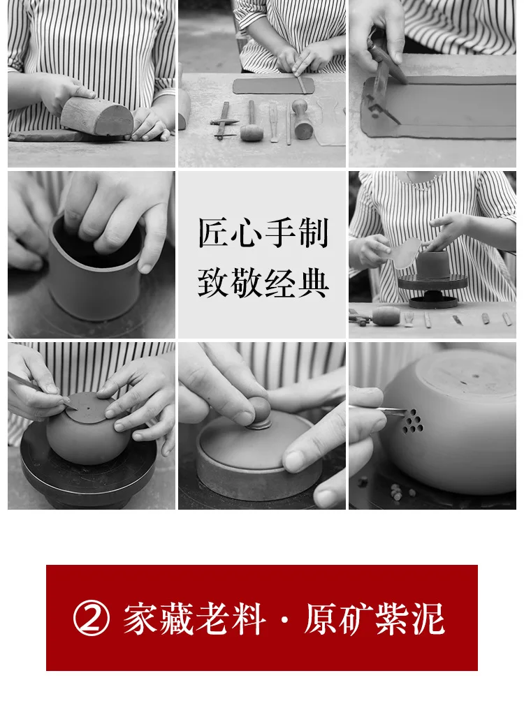 Purple clay Teapot in China has a history of thousand years for use, it's the most suitable containers of tea.Purple clay soil is aspecial natural soil -the clay contains iron. Apart from purple mud, there are green mud and red mud. These three kinds of mud are called purple sand mud. They are made in different proportion and different temperature. So the Purple clay teaset presents aspecial color.