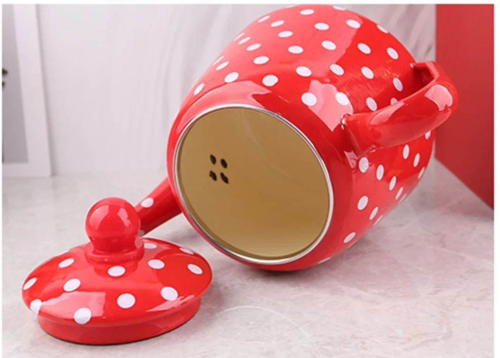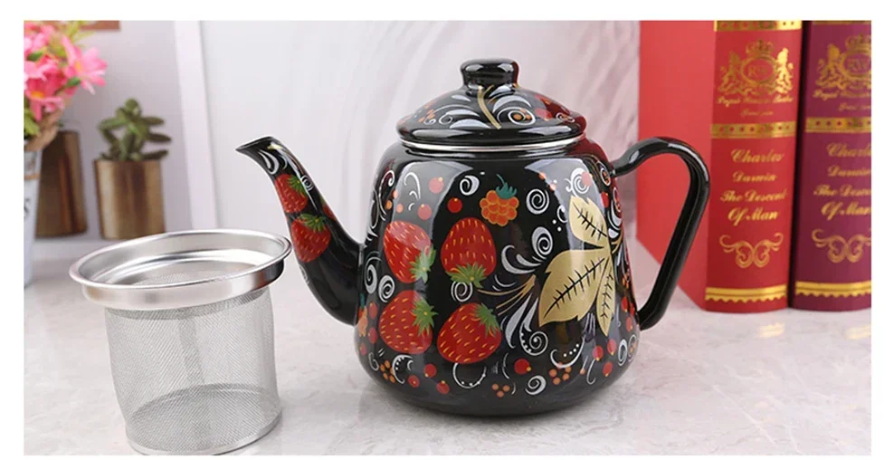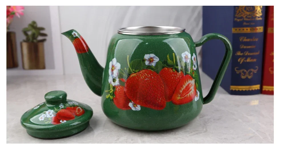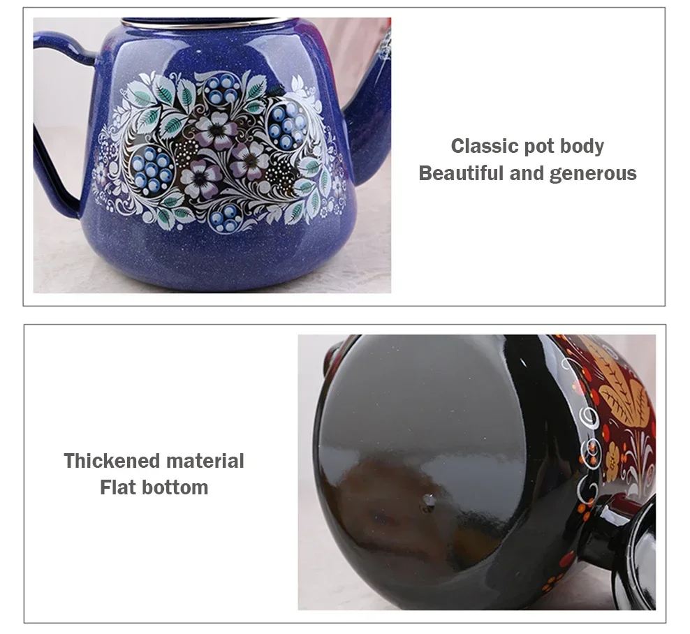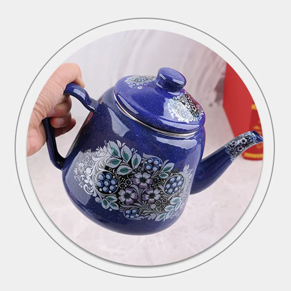 Chinese National Style Enamel Teapot Household Antique Enamel Kettle High Temperature Resistant Boil Overglaze Color Coffee Pot