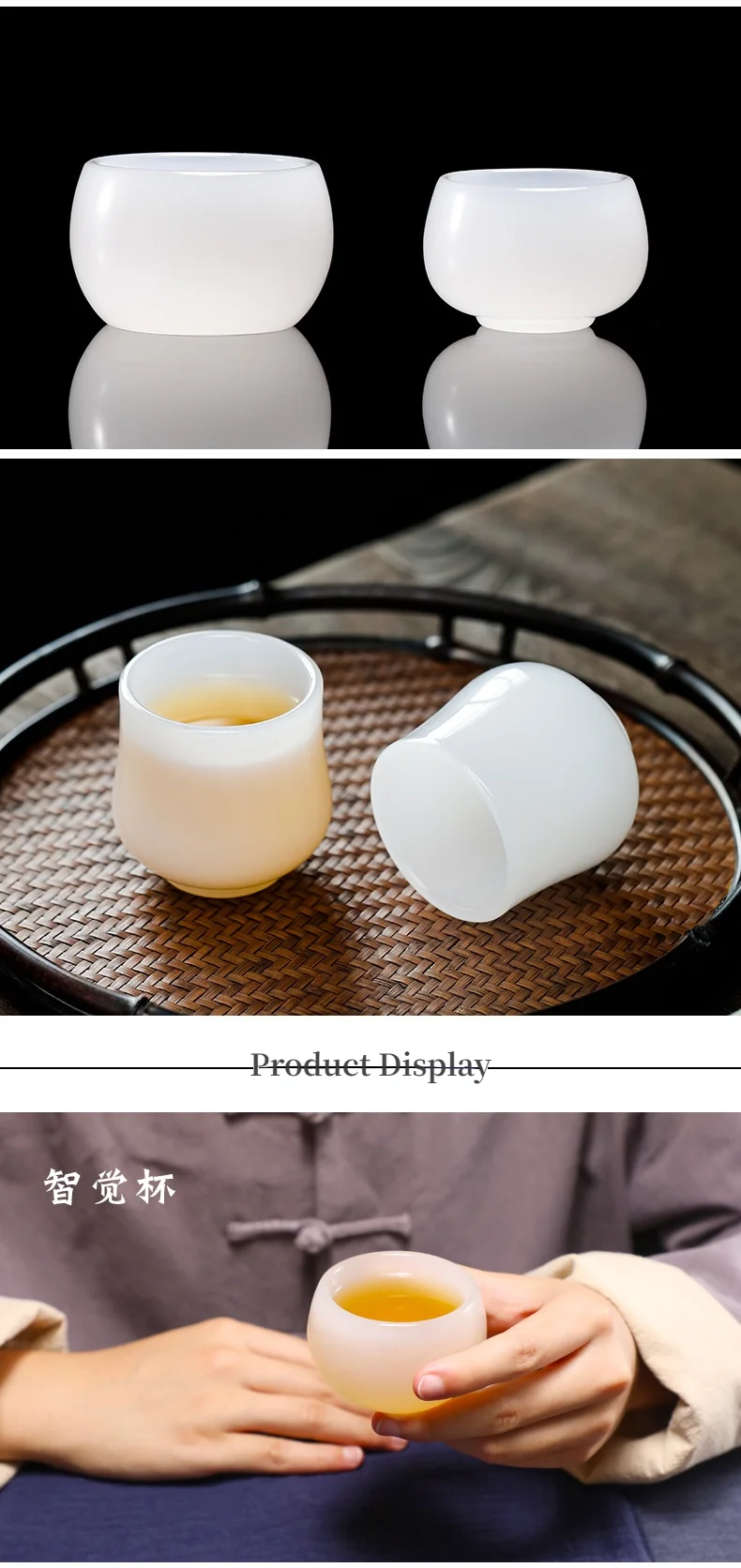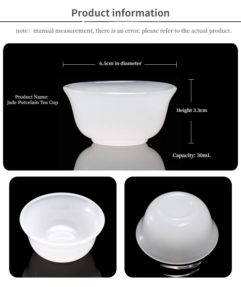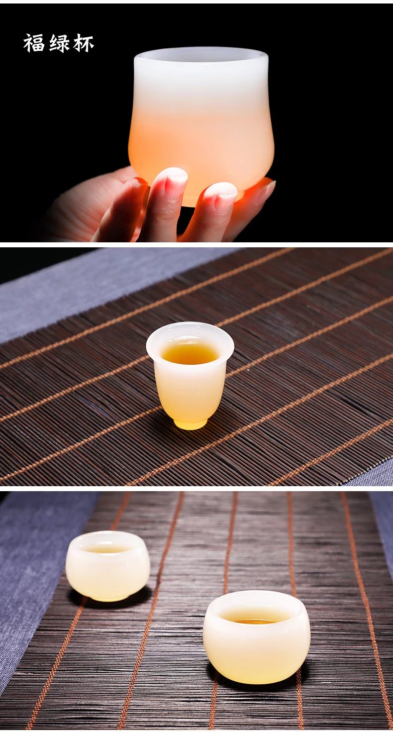 Chinese Style Teacup White Jade Porcelain Kung Fu Tea Set Ceramic Glass Glaze Personal Customized Tea Cup Bowl Teaware Gift