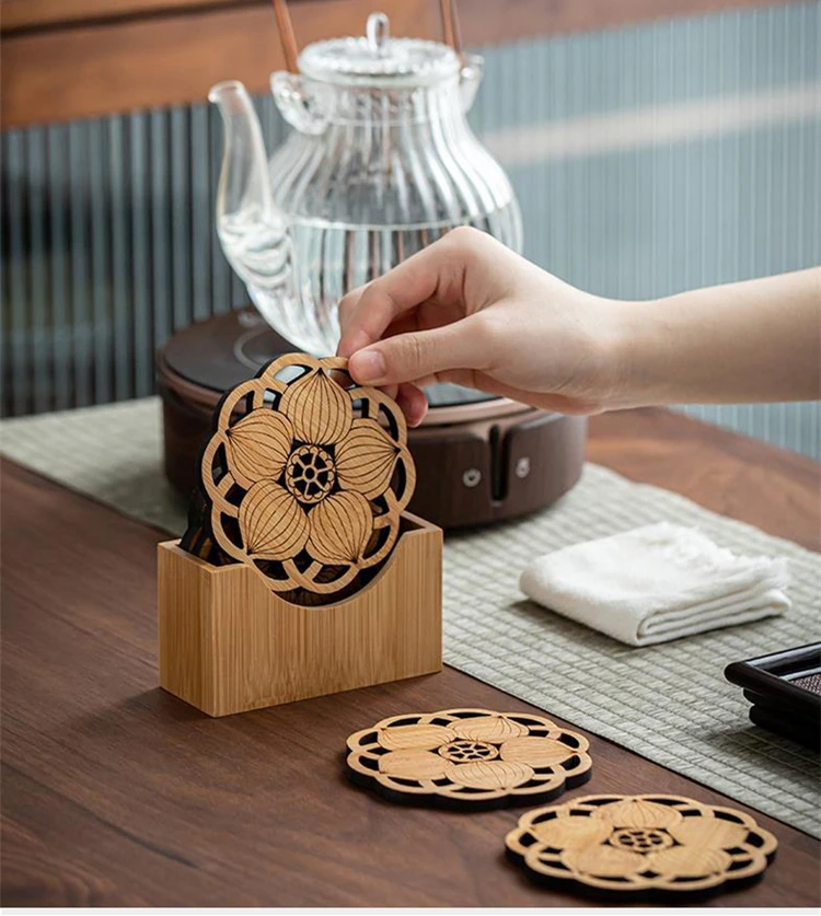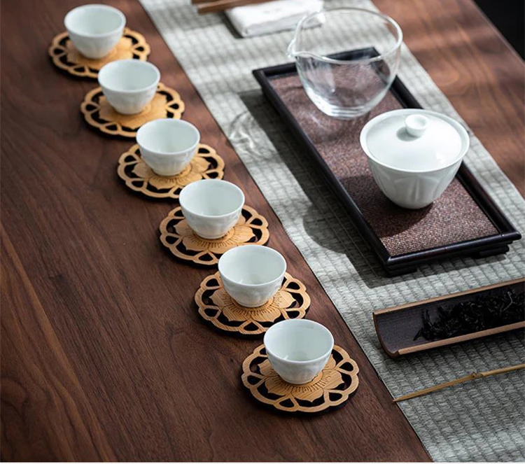 Chinese Tea Ceremony Bamboo Coaster Set, Kungfu Tea Cup Mat, Saucer Chinoiserie, Creative Accessories