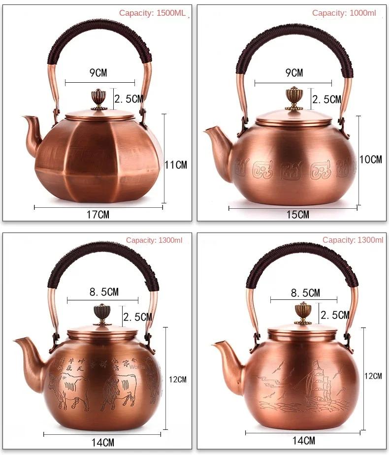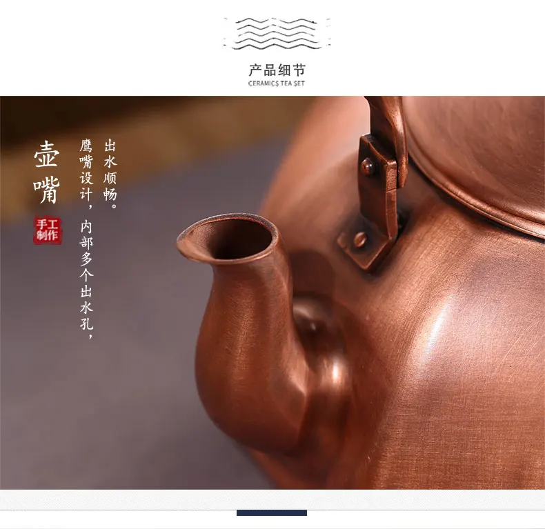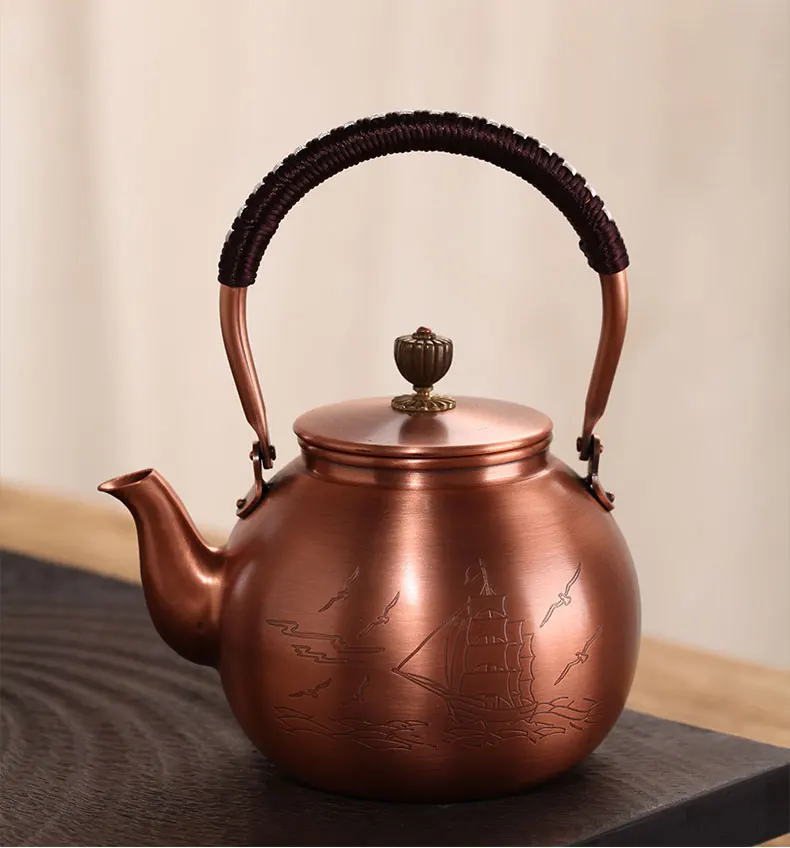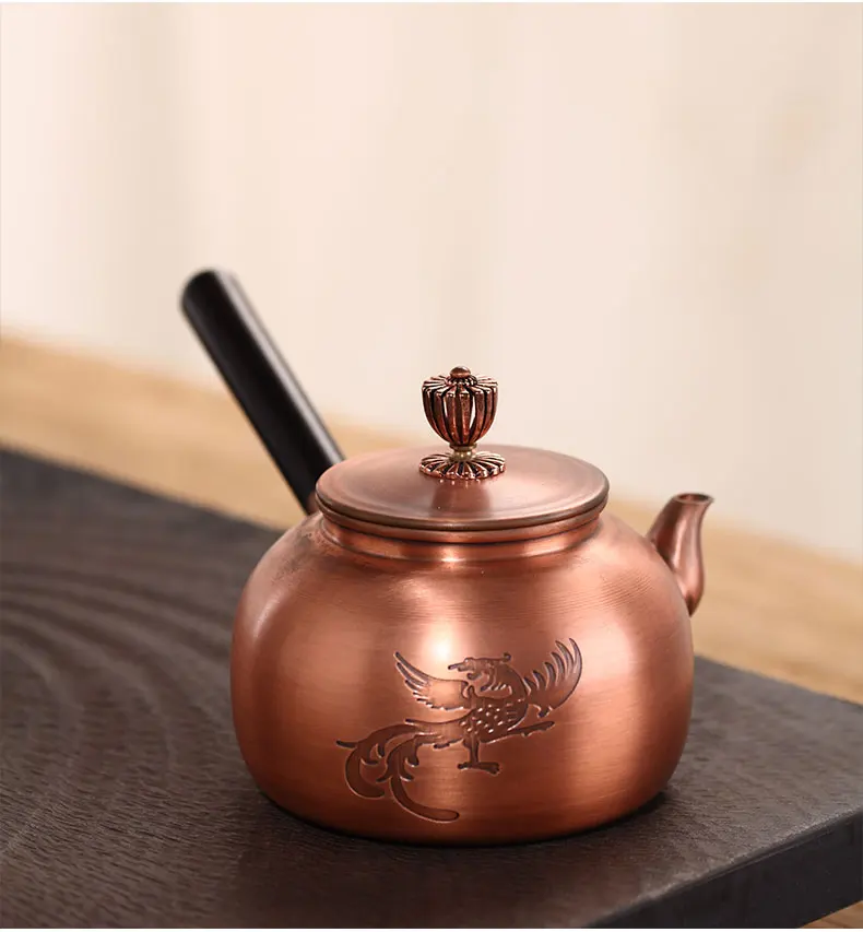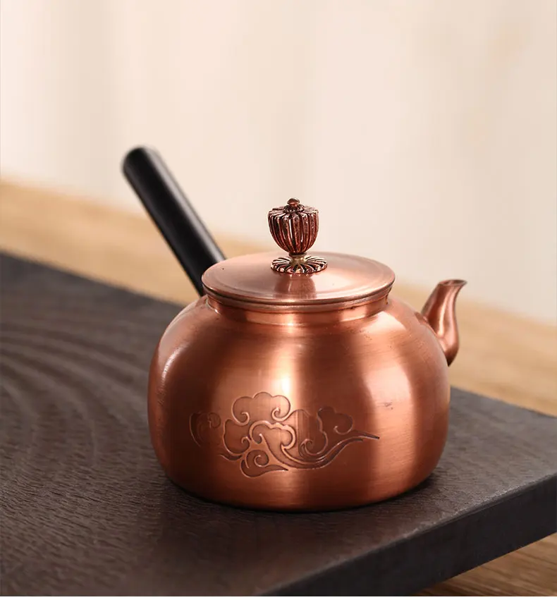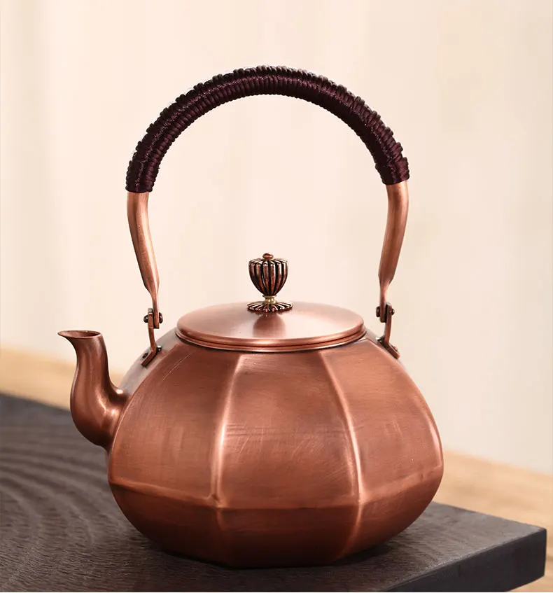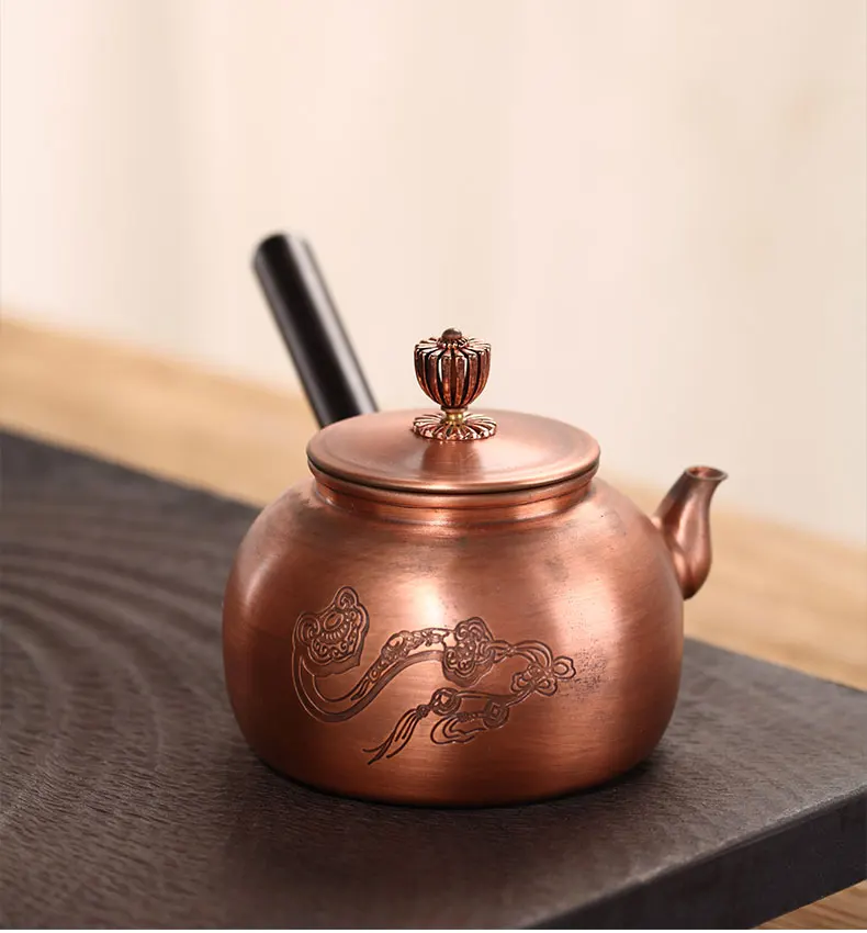 Chinese Teapot Red Copper Pot Handmade Water Jug Retro Health Teapot Metal Tea Infusers Kung Fu Tea Table Household Kettle
