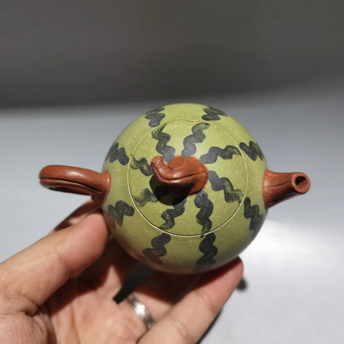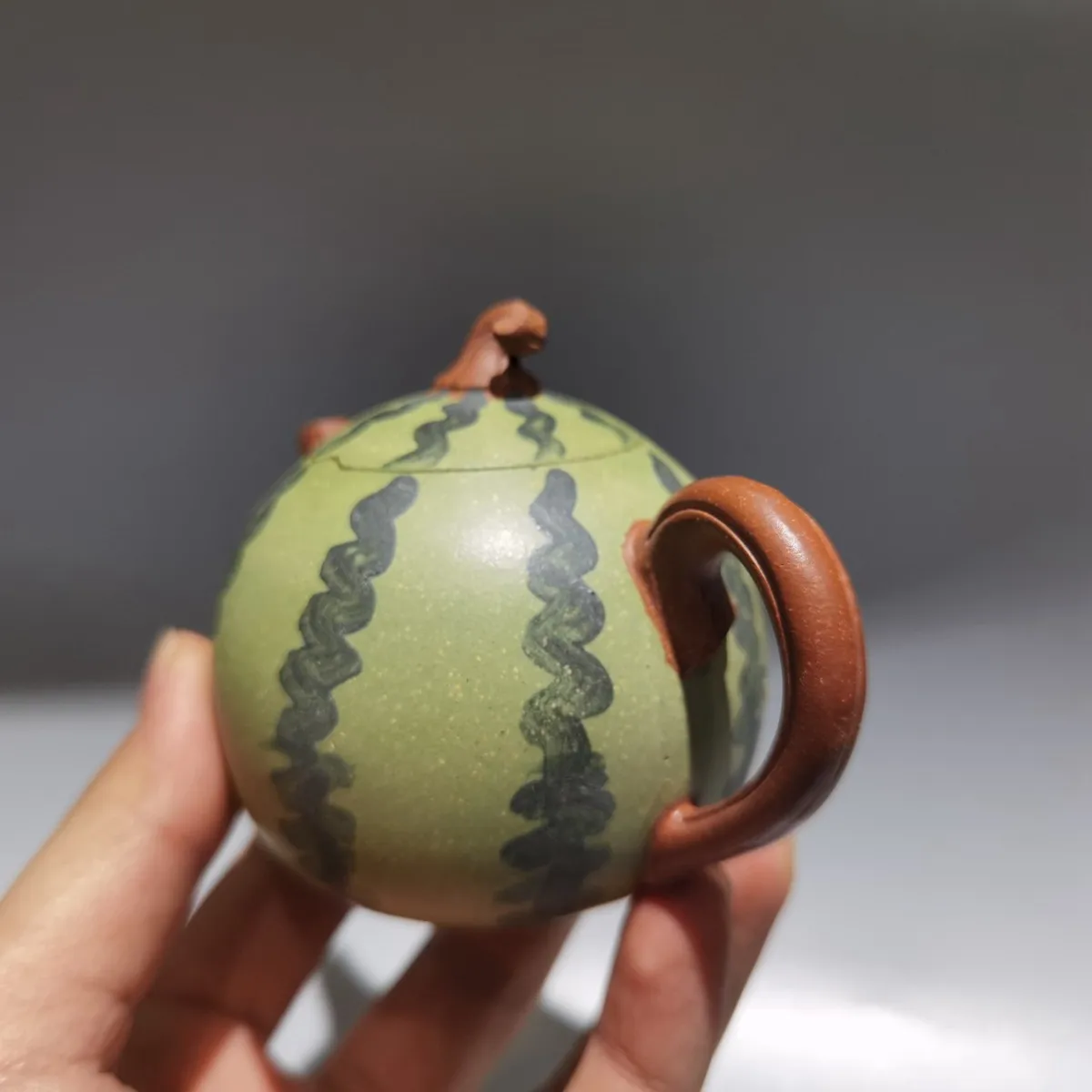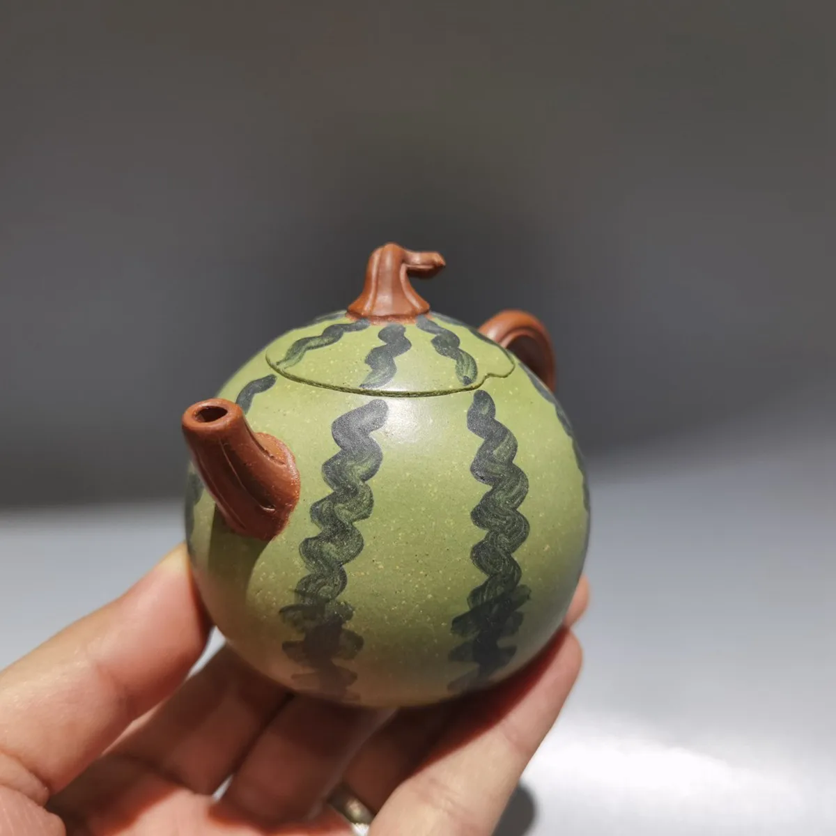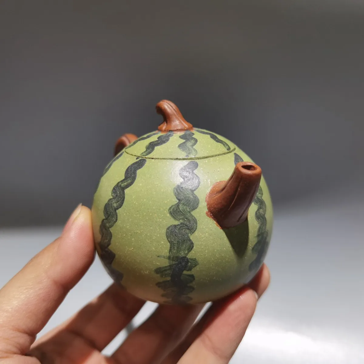 Chinese Yixing Zisha Clay Teapot Green Mud Watermelon Pot Chen Mingyuan 100ml