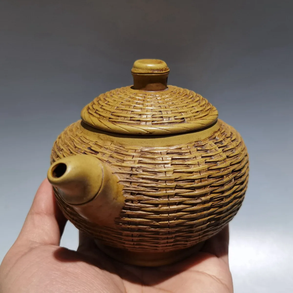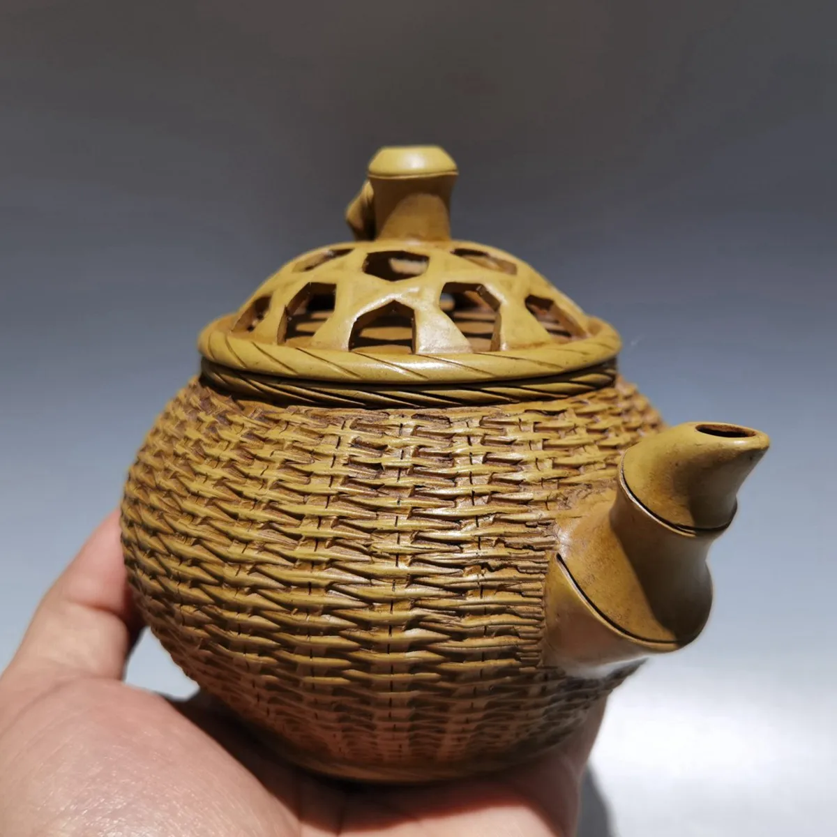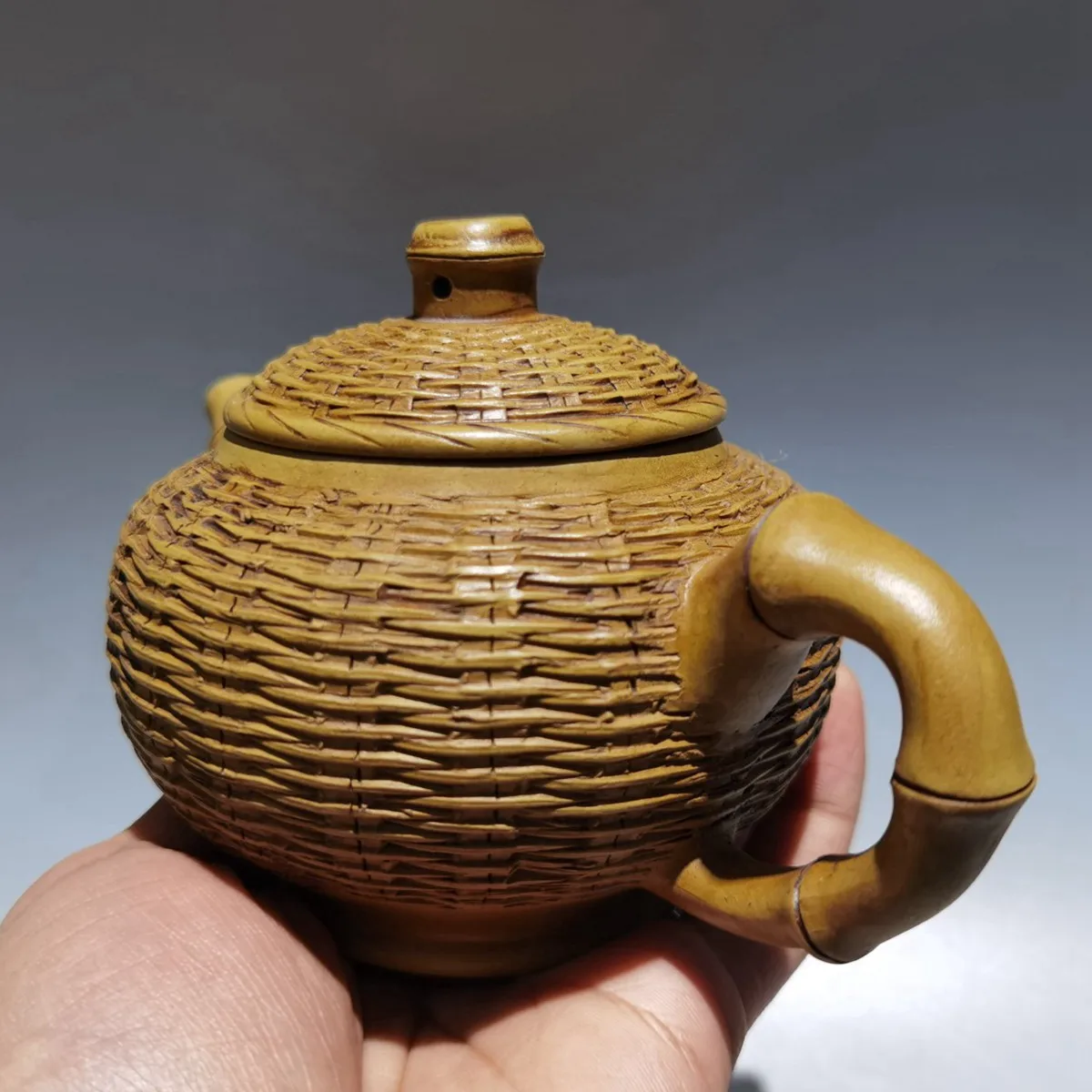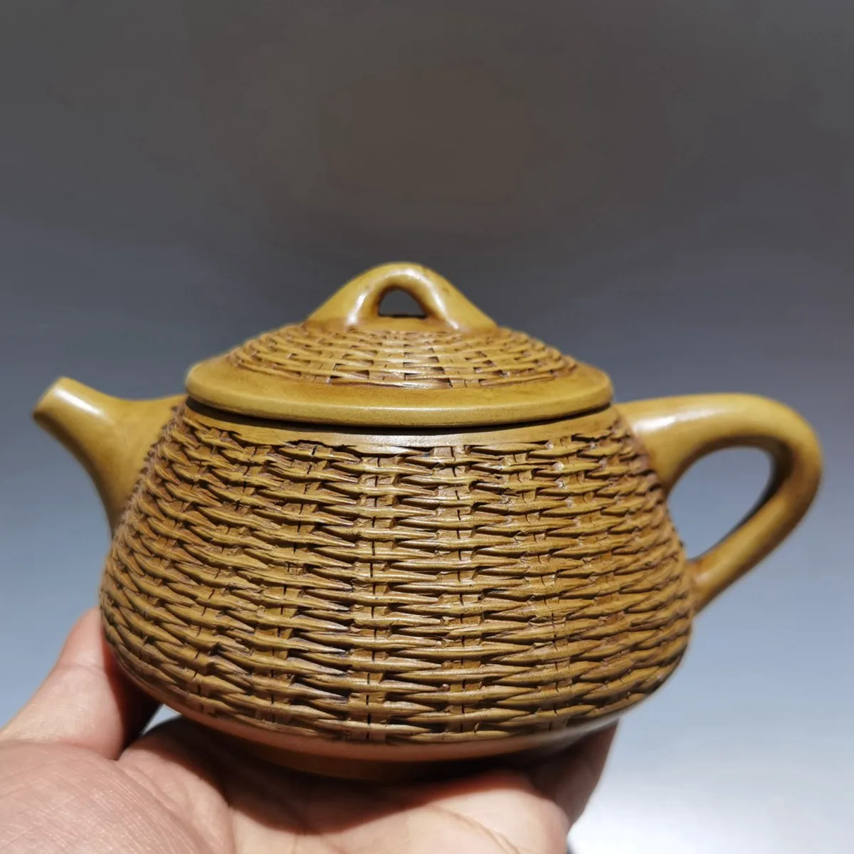 Chinese Yixing Zisha Clay Teapot Yellow Duan Mud Bamboo Weaving Kungfu Tea Set