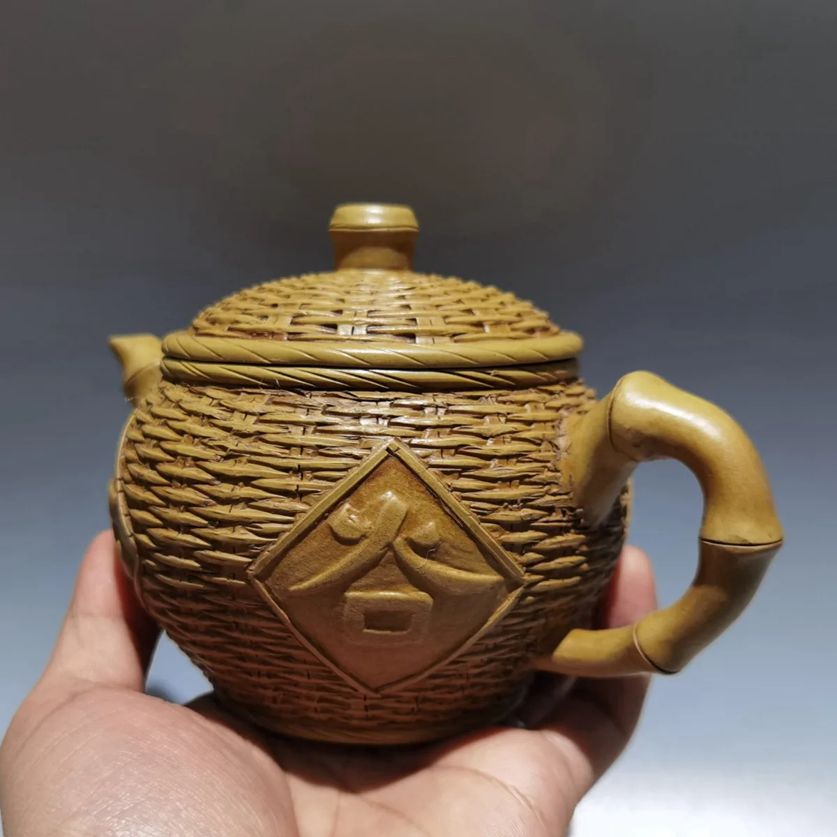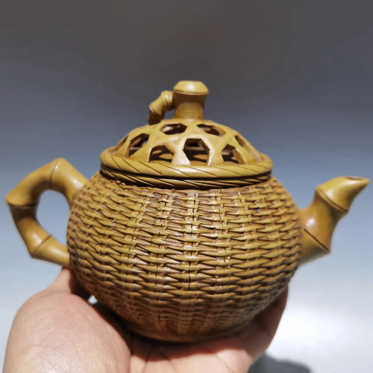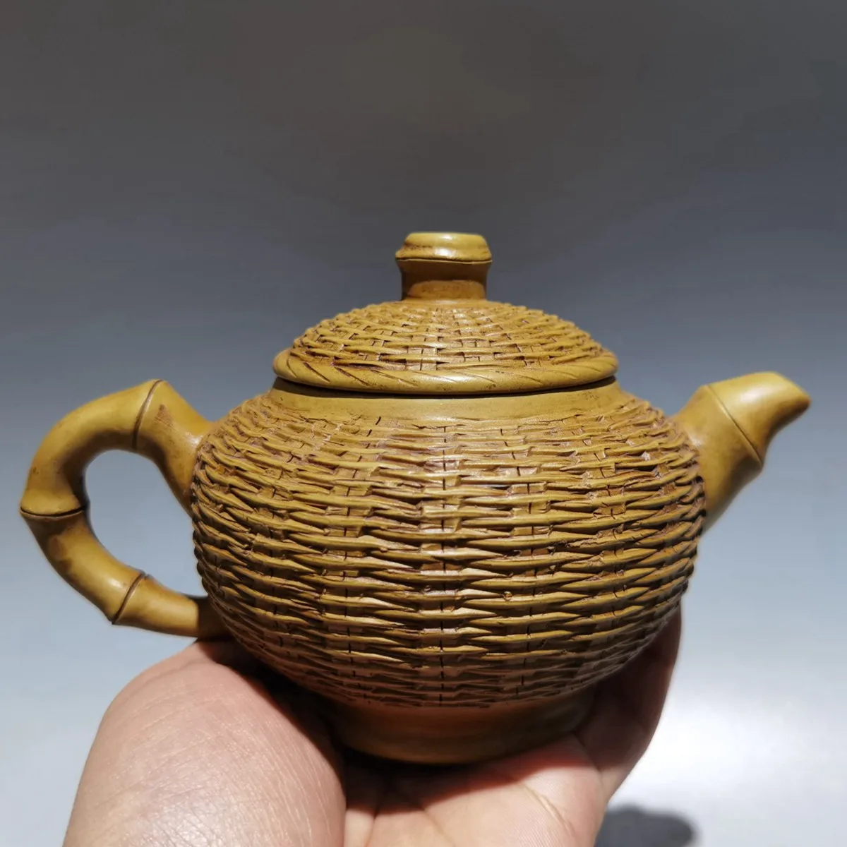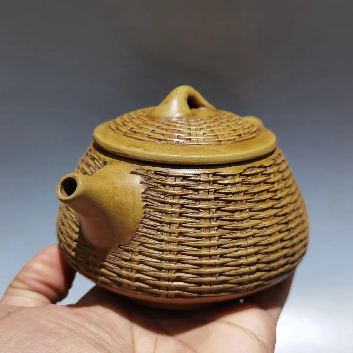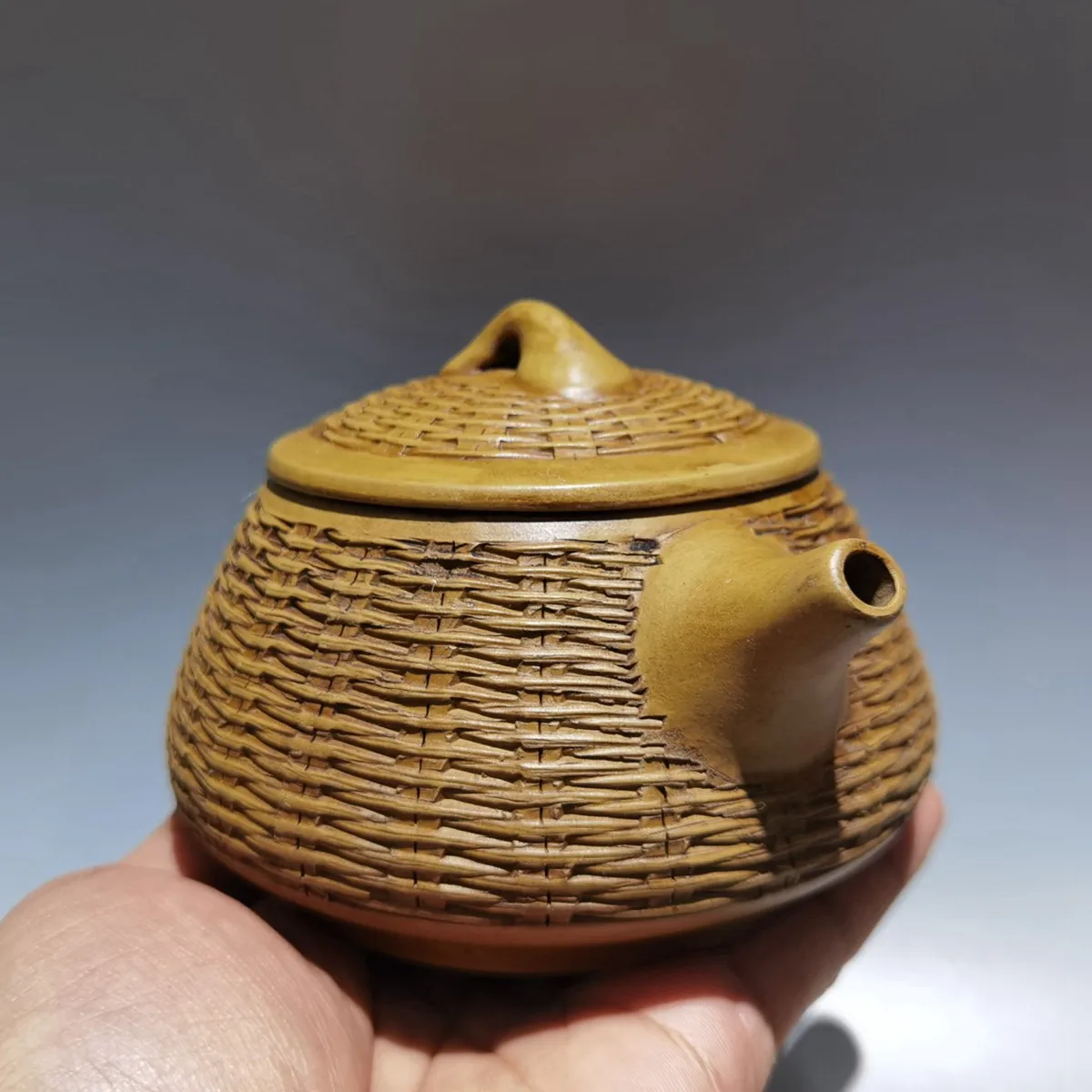 Chinese Yixing Zisha Clay Teapot Yellow Duan Mud Bamboo Weaving Kungfu Tea Set