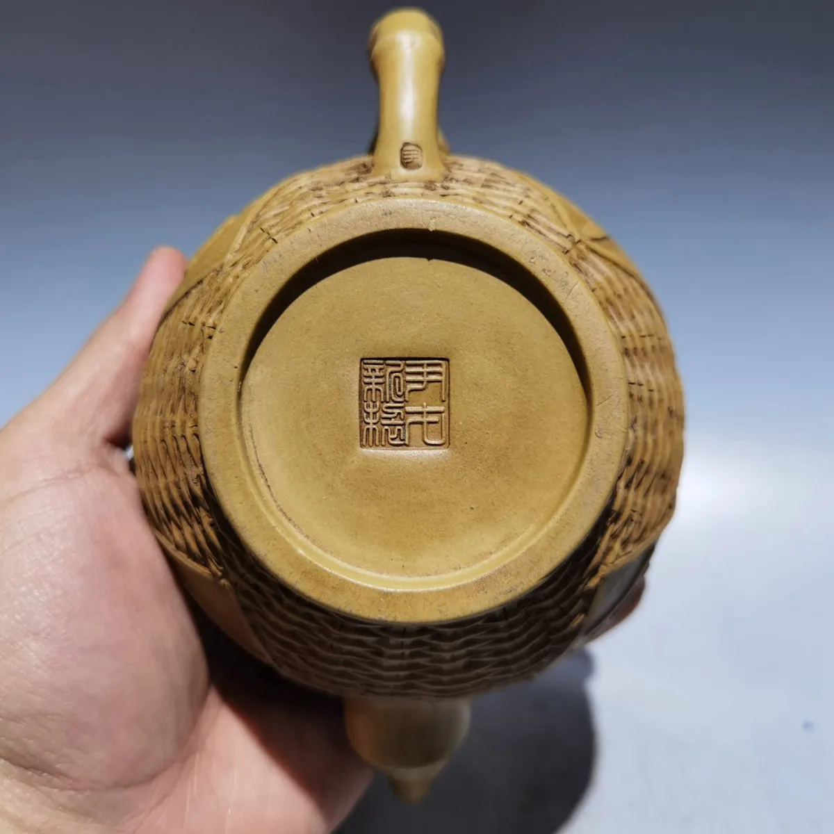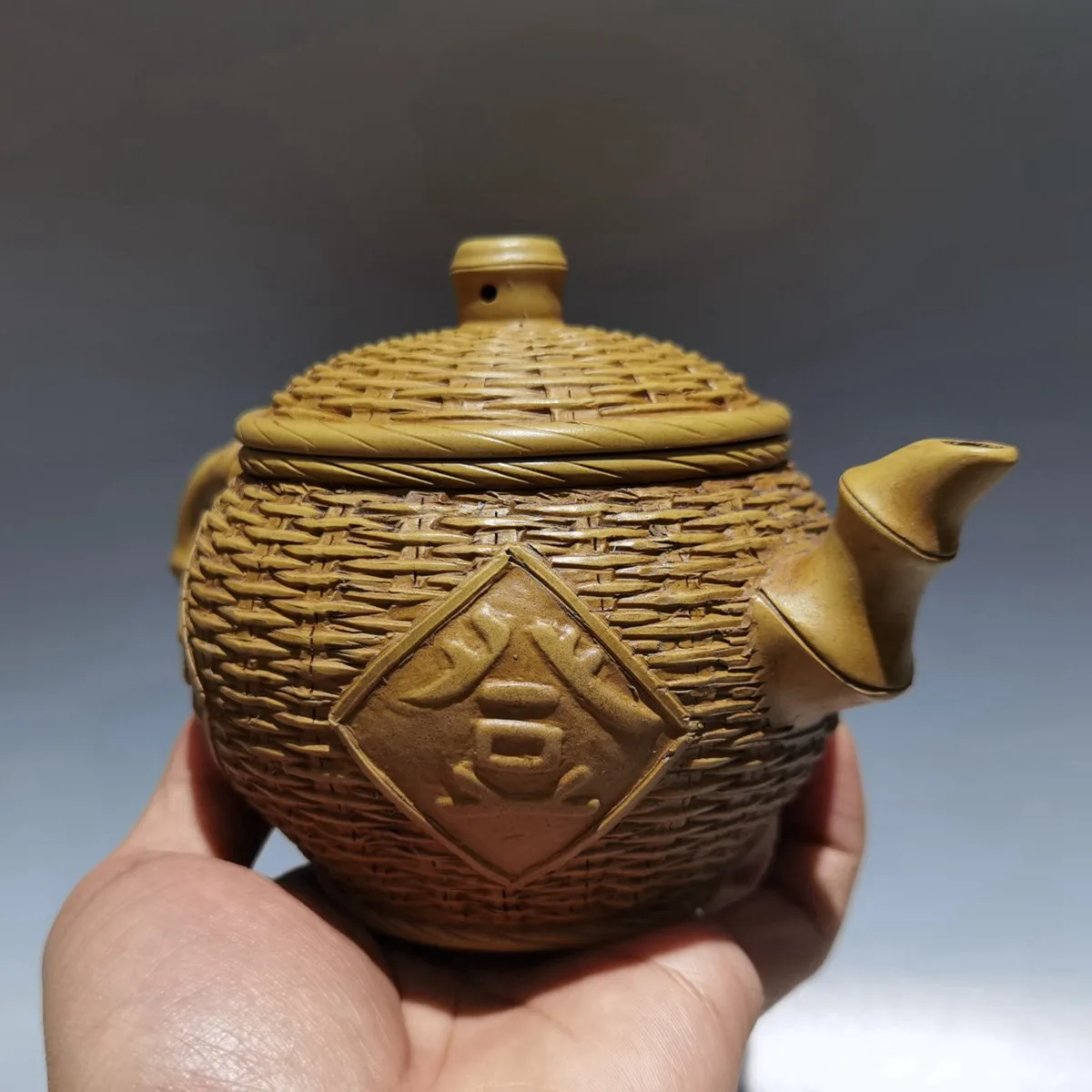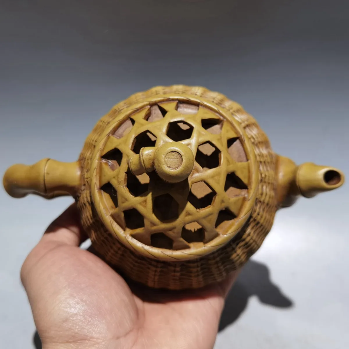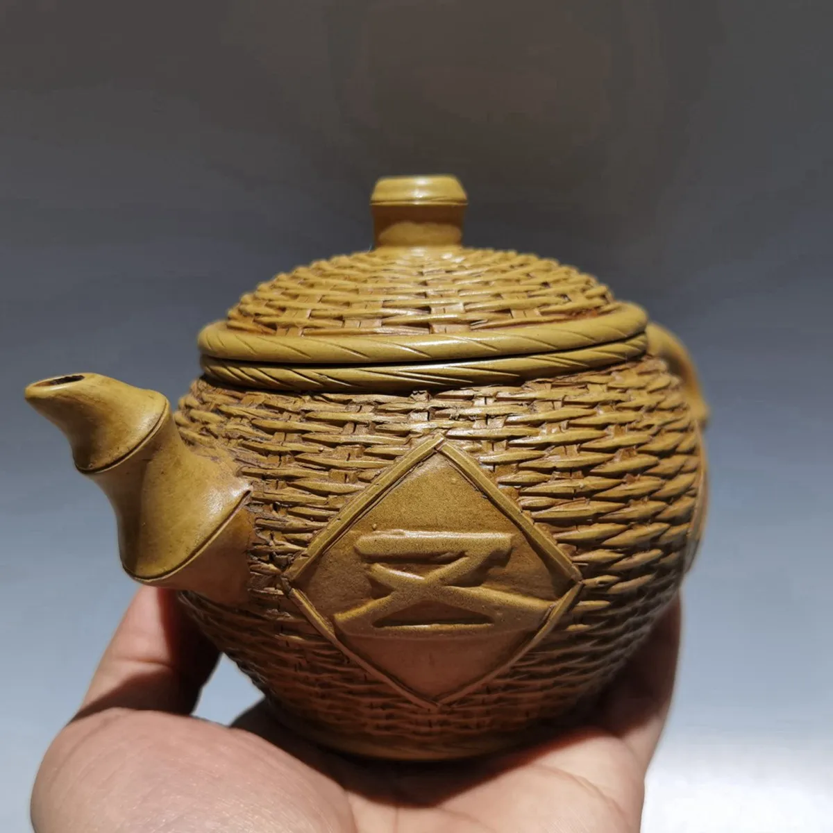 Chinese Yixing Zisha Clay Teapot Yellow Duan Mud Bamboo Weaving Kungfu Tea Set