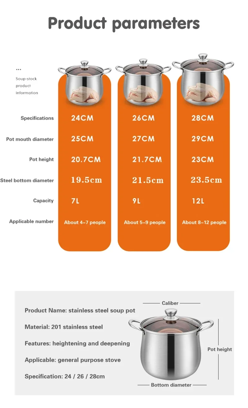 Cooking pot household induction cooker Stainless steel soup pot Special for large capacity Meat pot Stewed chicken soup hot pot