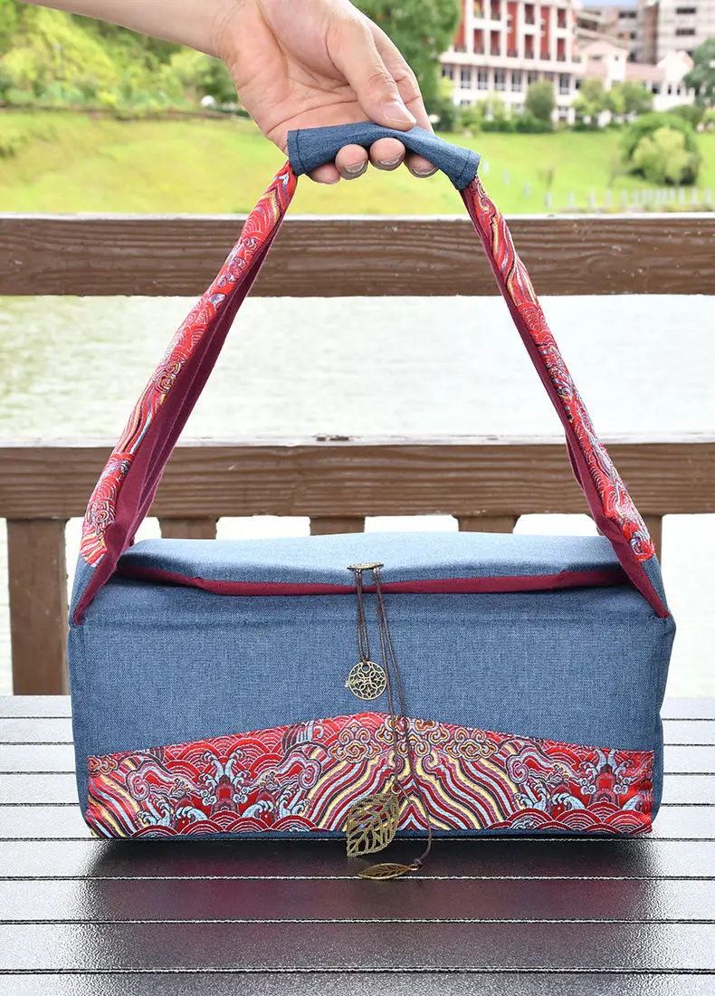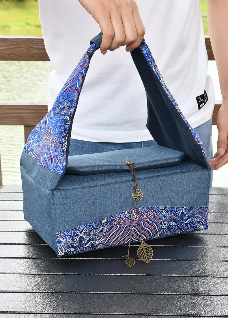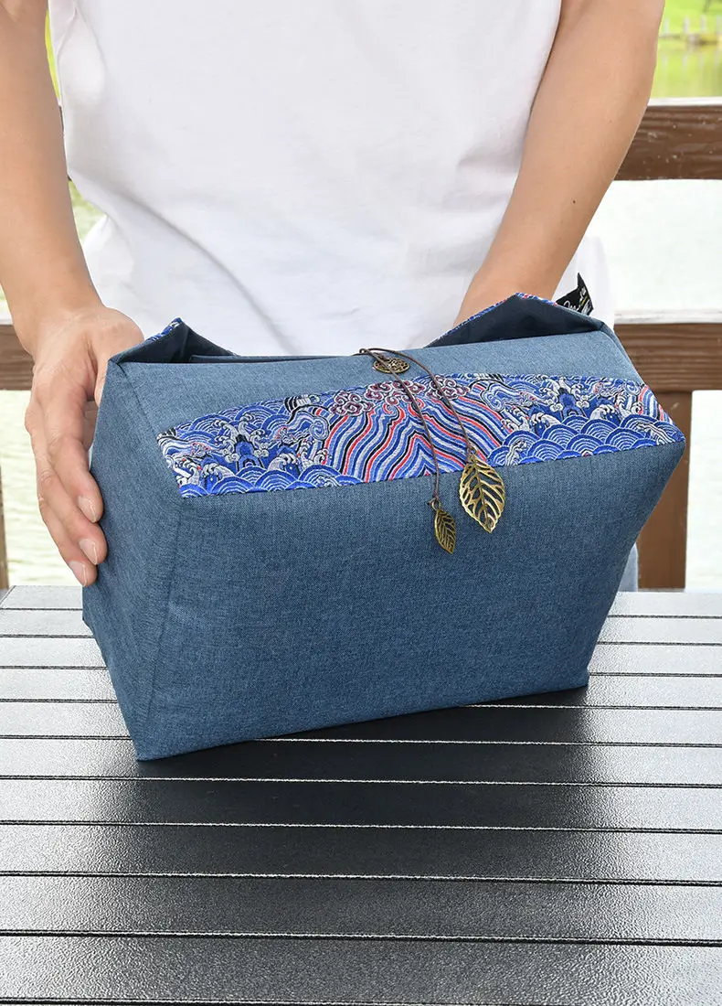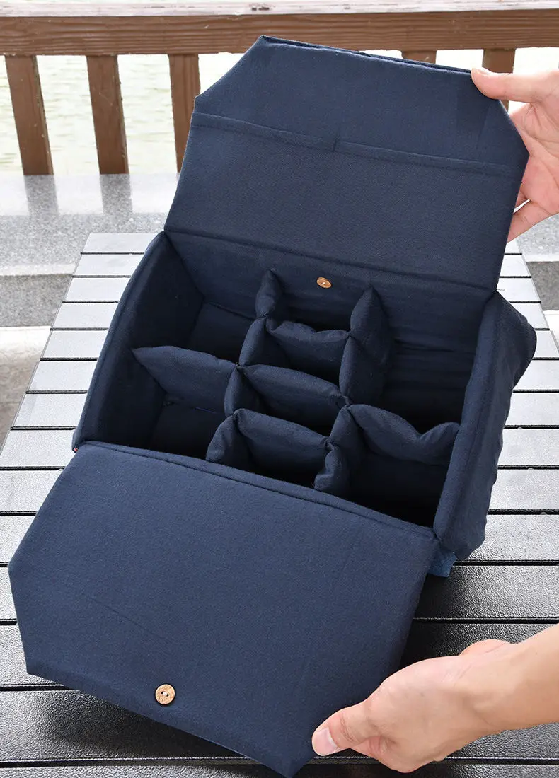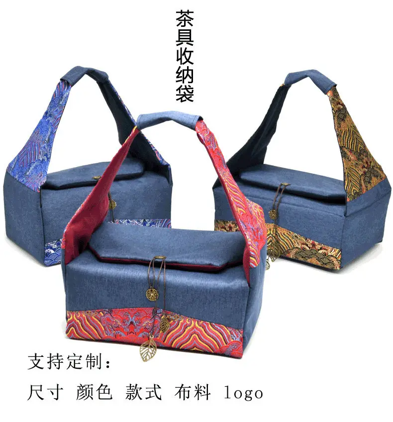 Travel tea set storage bag portable tea set bag four pots four cups cotton and linen thick portable travel bag car outdoor