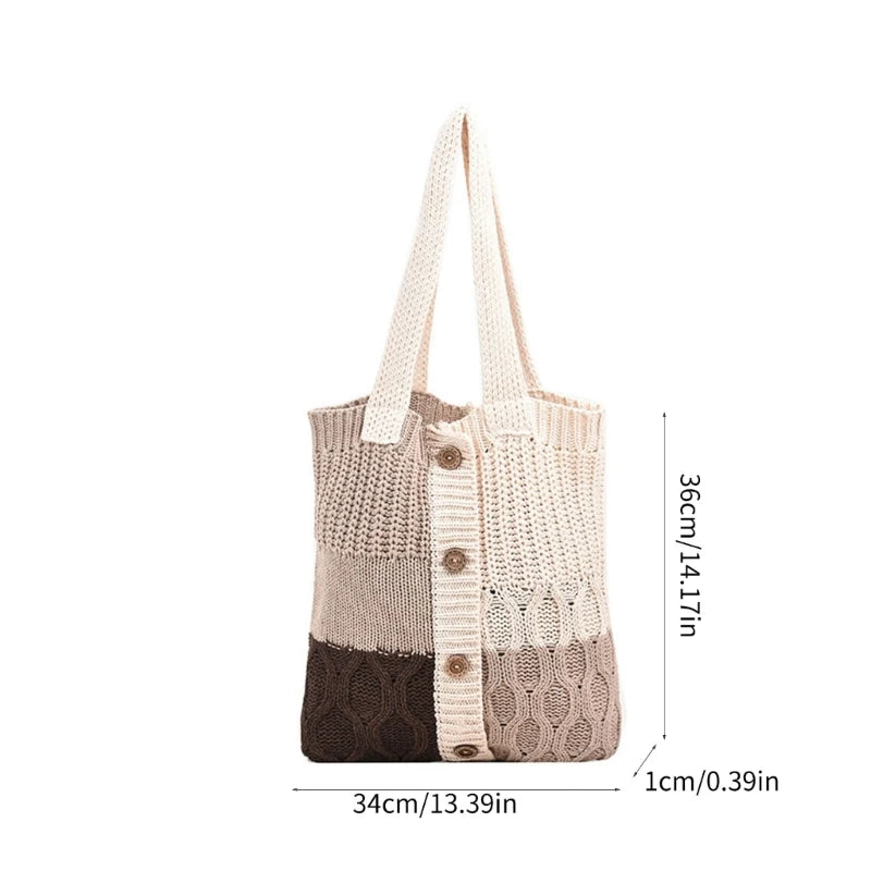 Size: 13x14inchs,this knitted shoulder bag is functional for carrying essential such as book, journal, notepad, phone, wallet, cards, makeup, car key, headphone, sunglasses.