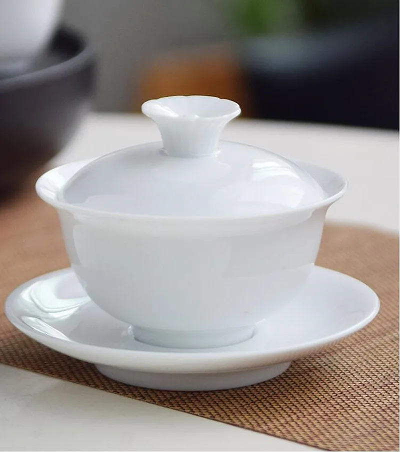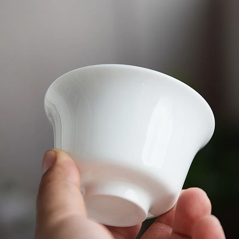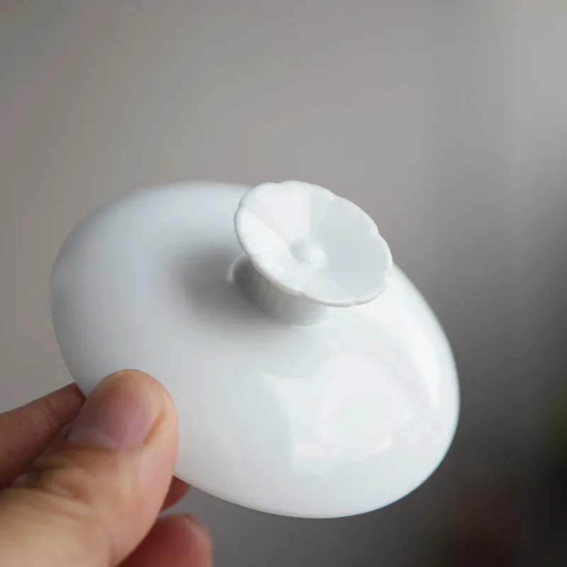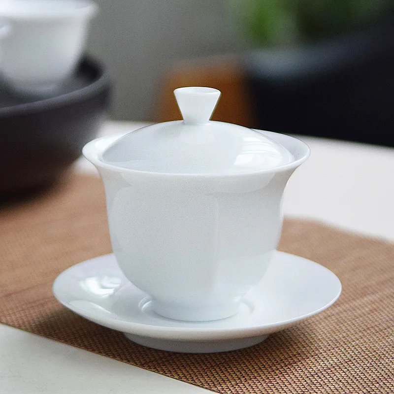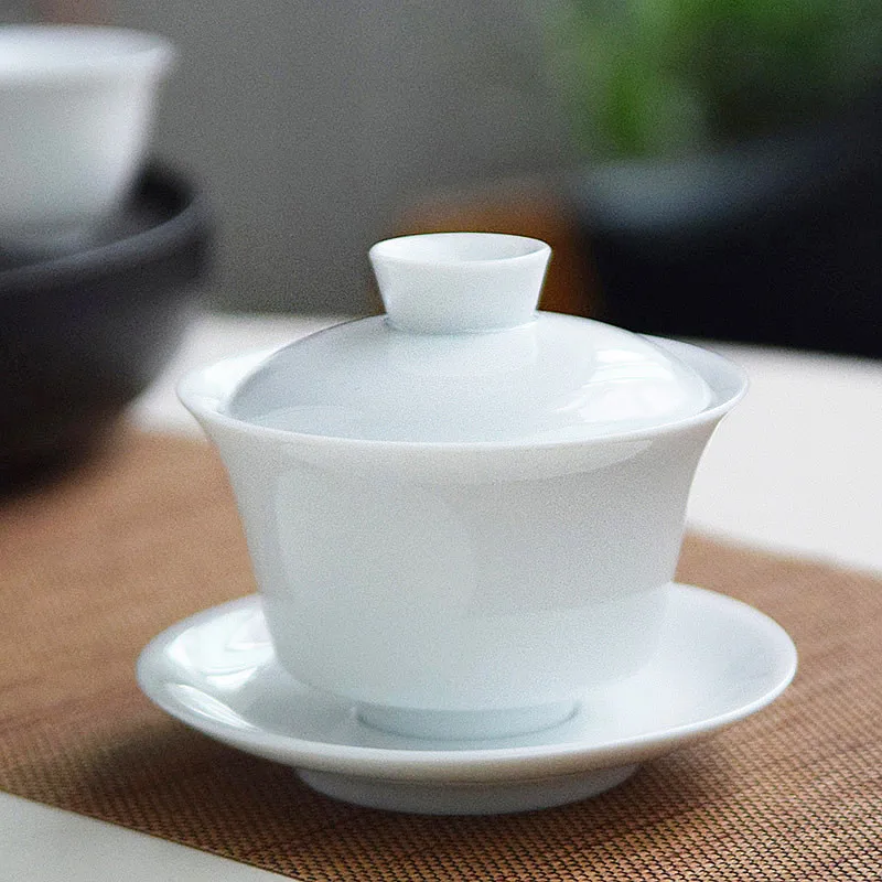 Dehua White Porcelain Cover Bowl, Kungfu Single Tea Cup, Handmade Ceramic Tea Set, Large and Small Sancai, Household