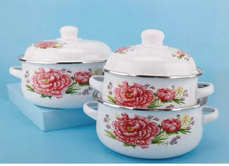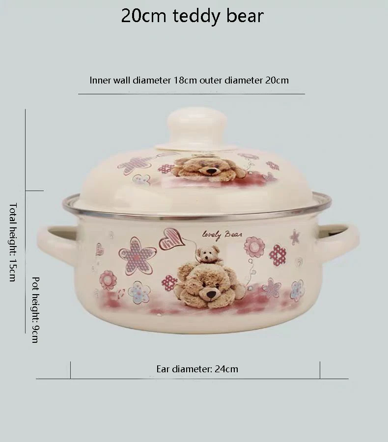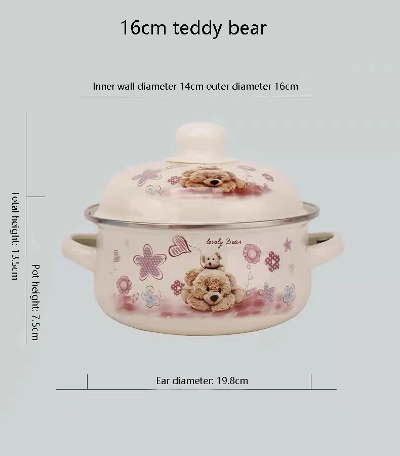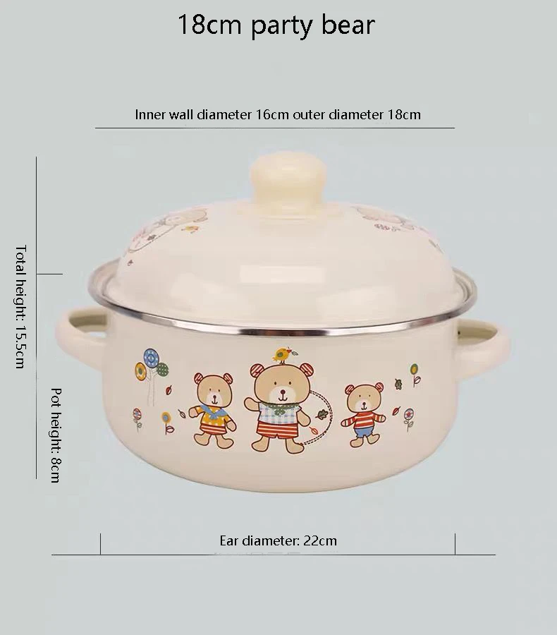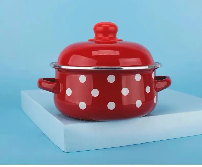 Enamel Pot Enamel Enamel Soup Pot Old-fashioned Binaural Pot with Lid Saucepan Instant Noodle Pot Induction Cooker Gas Universal