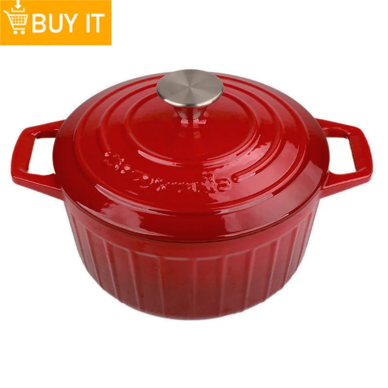 Excellent Material Dutch Oven is made of aluminum alloy,It's covered with a heavy-duty enamel to resist chipping,while the interior is engineered to ward off dulling and staining.and requires no pre-seasoning.Great for healthy cooking without safety worries