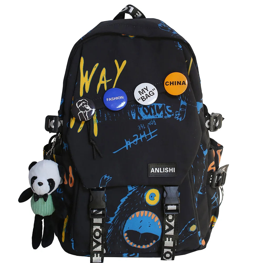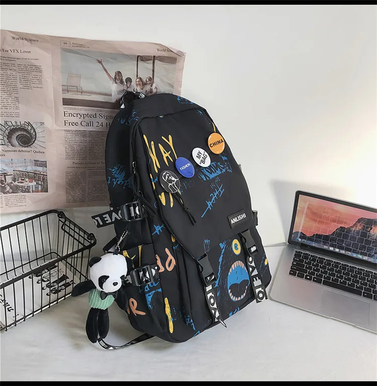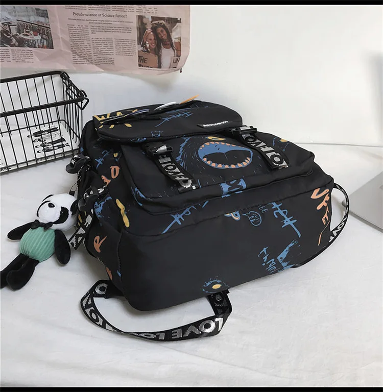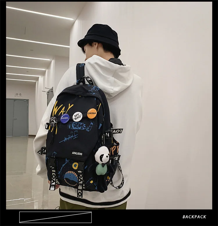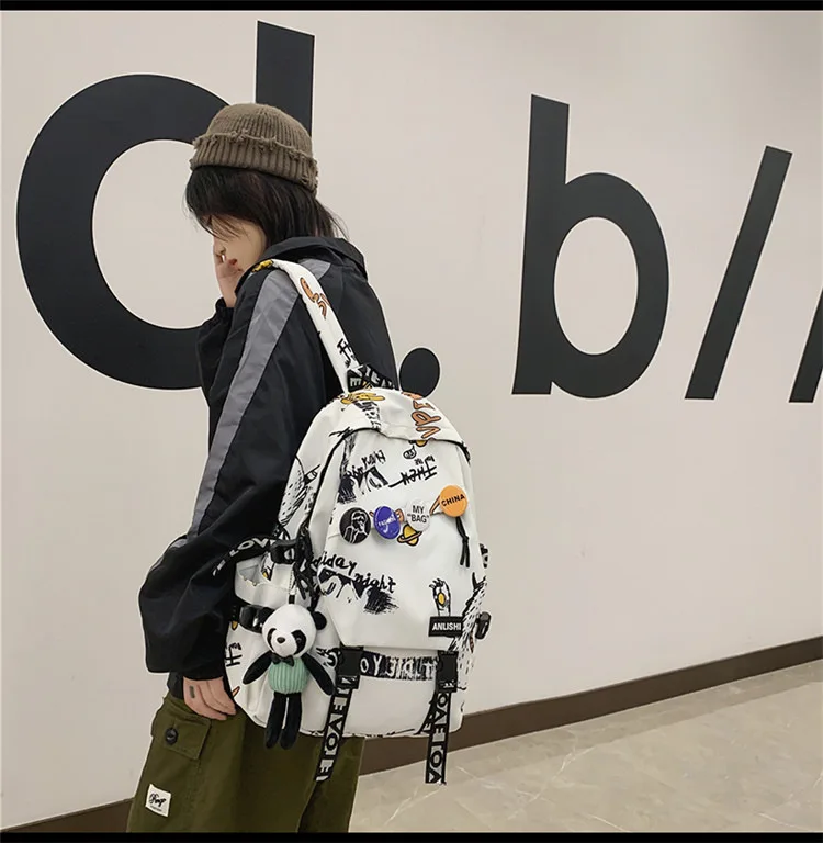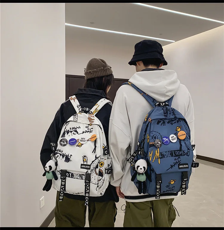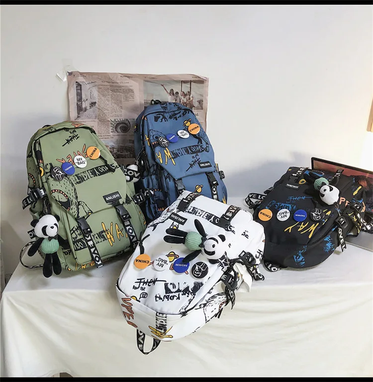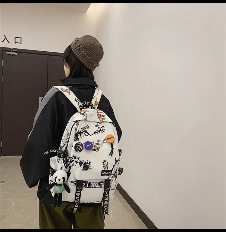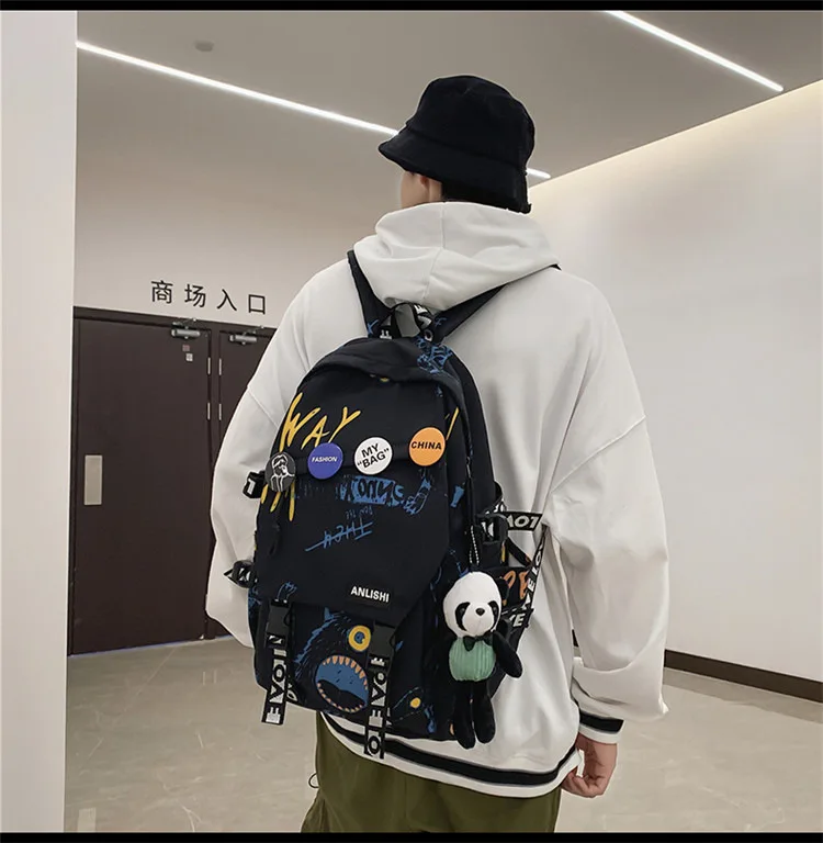 college student backpack large capacity schoolbag for boy cute doll