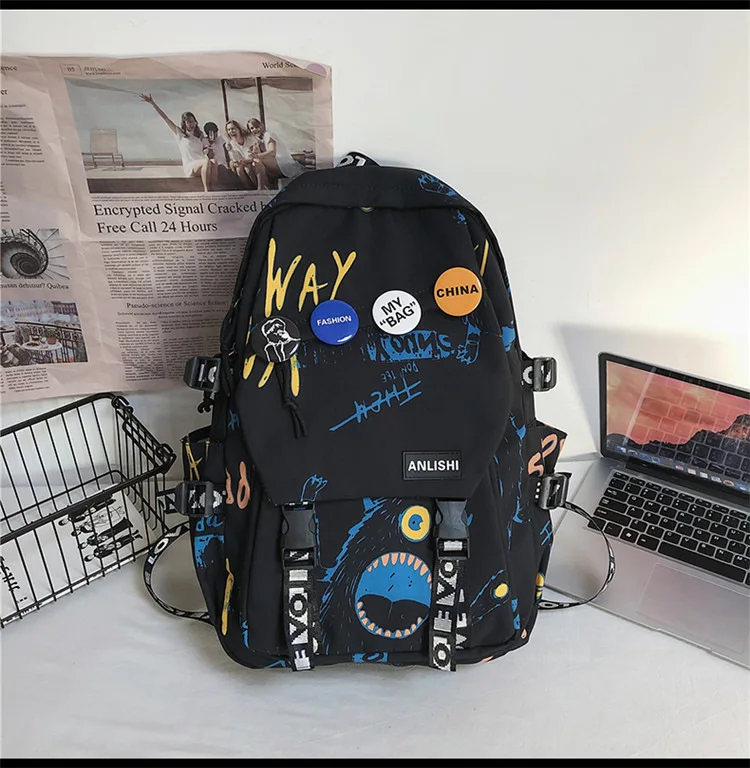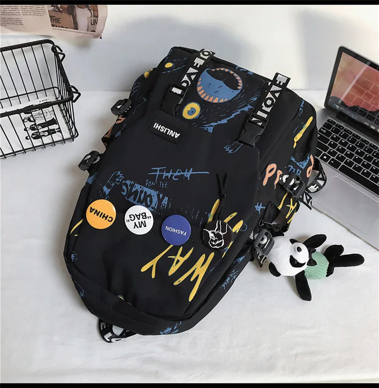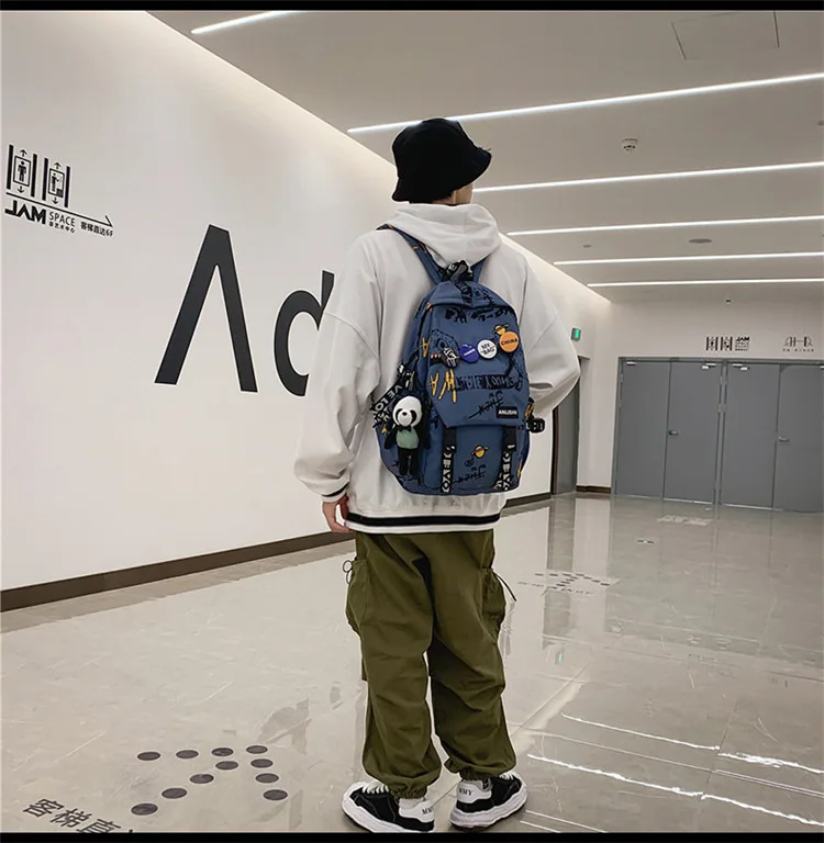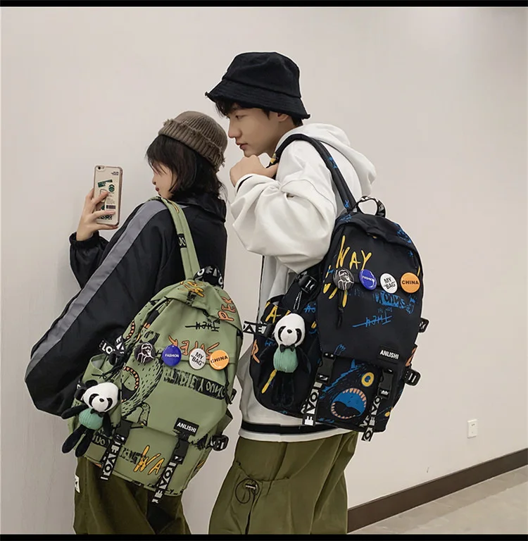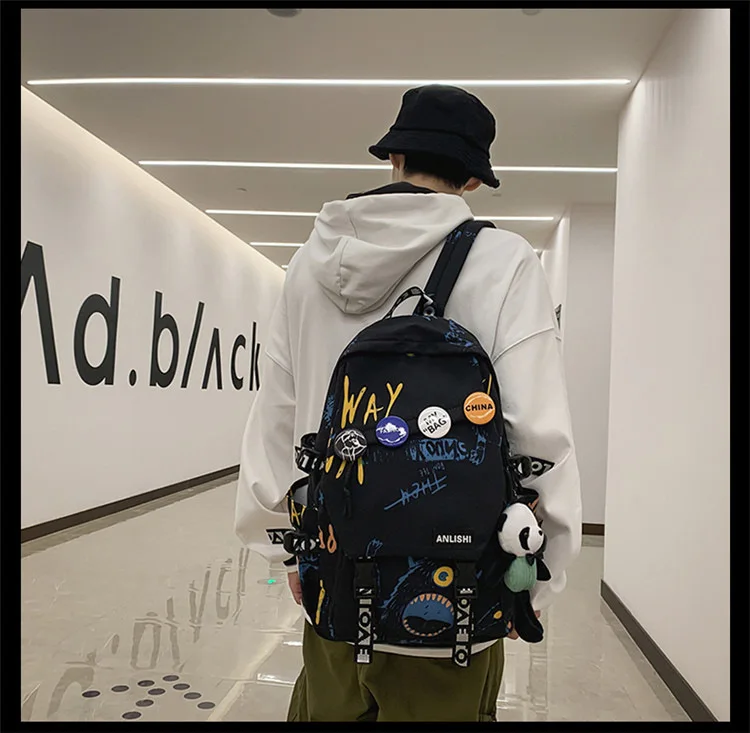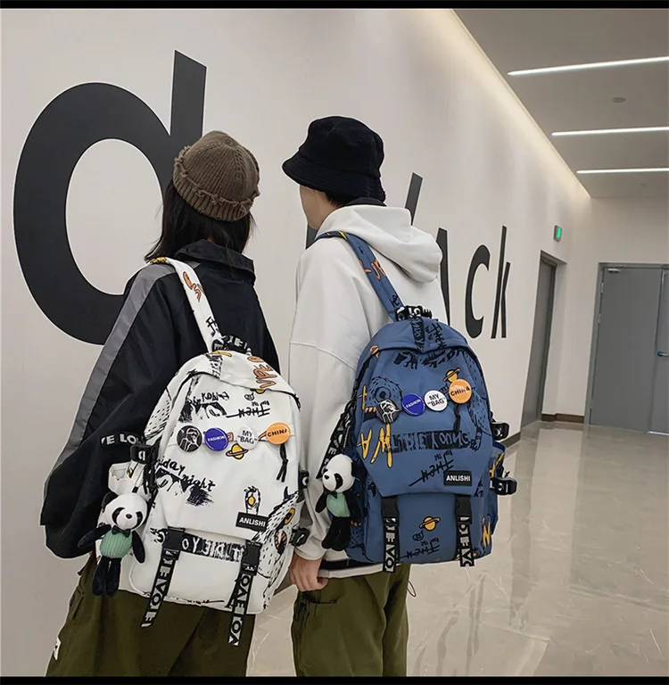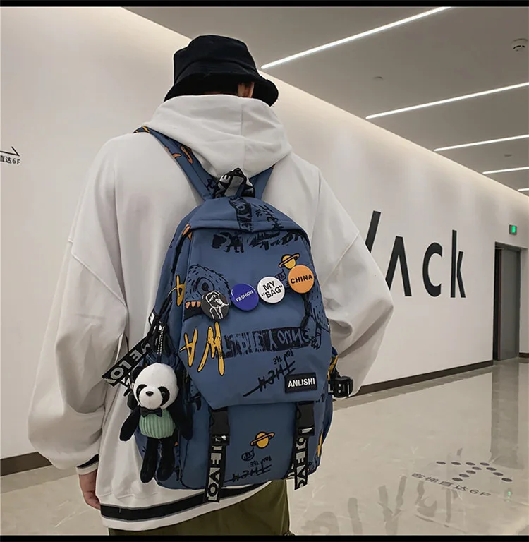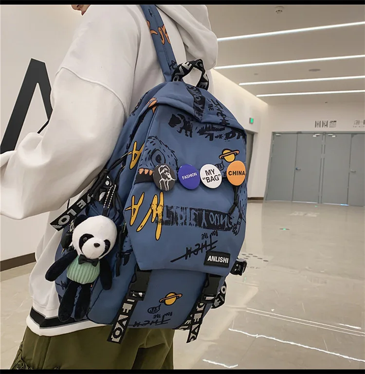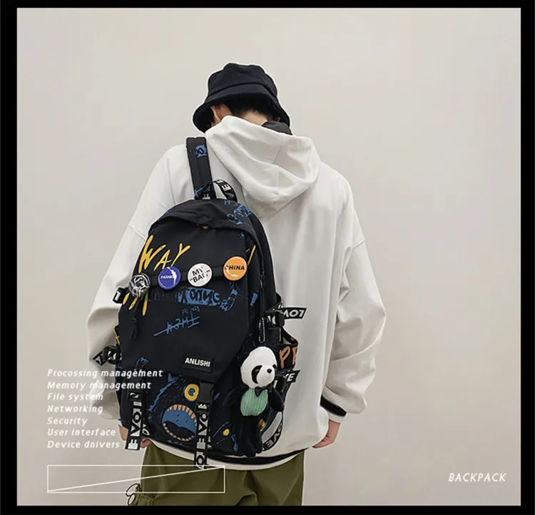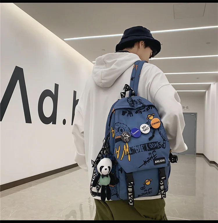 college student backpack large capacity schoolbag for boy cute doll