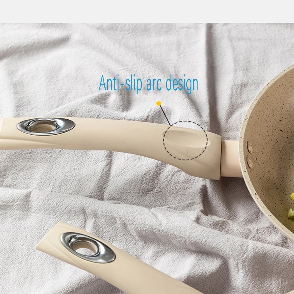 This medical stone non-stick pan is cute and fresh, and has an online appearance. The weight of the pan itself is very light, and girls with little strength can easily pick it up.