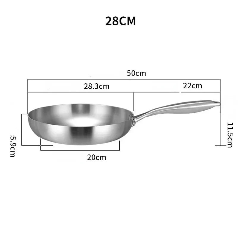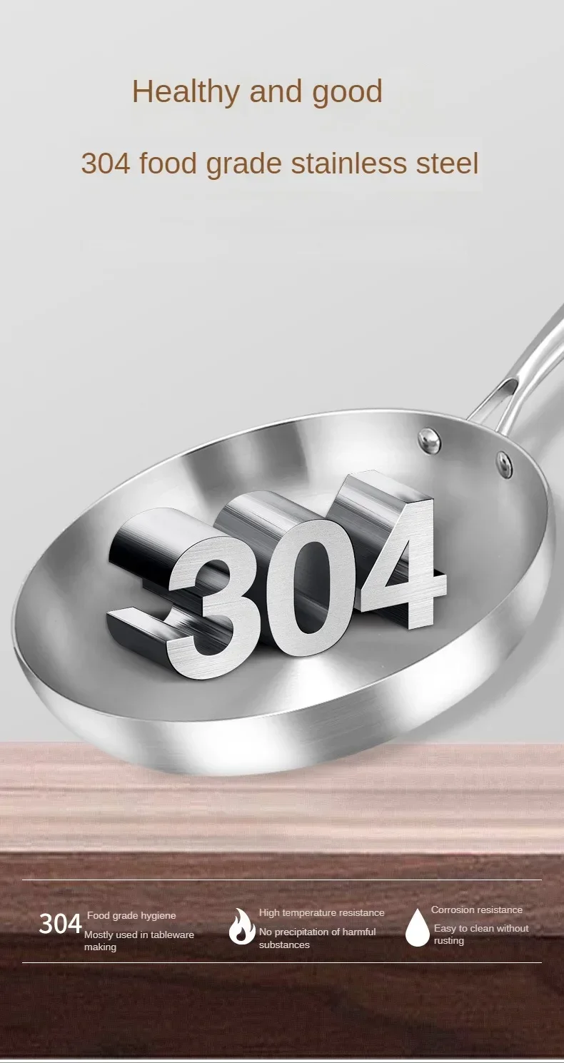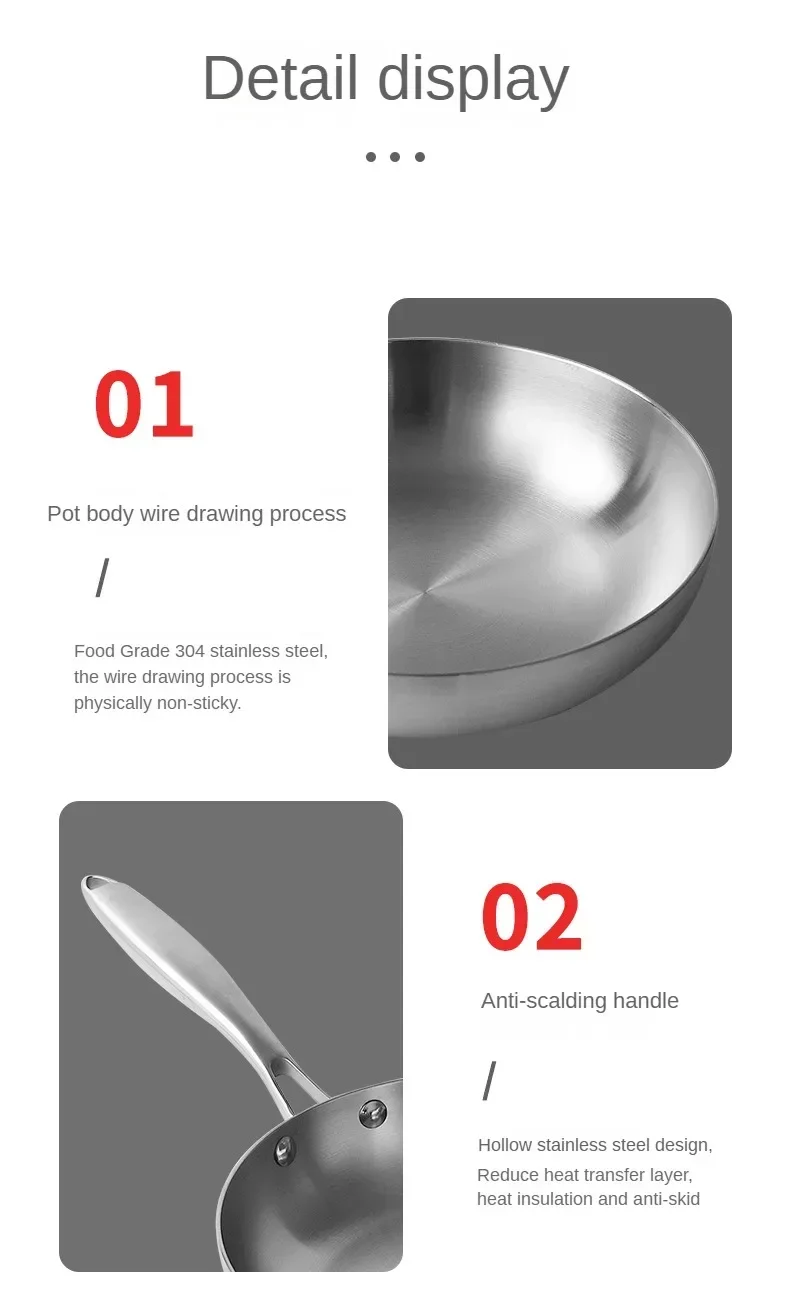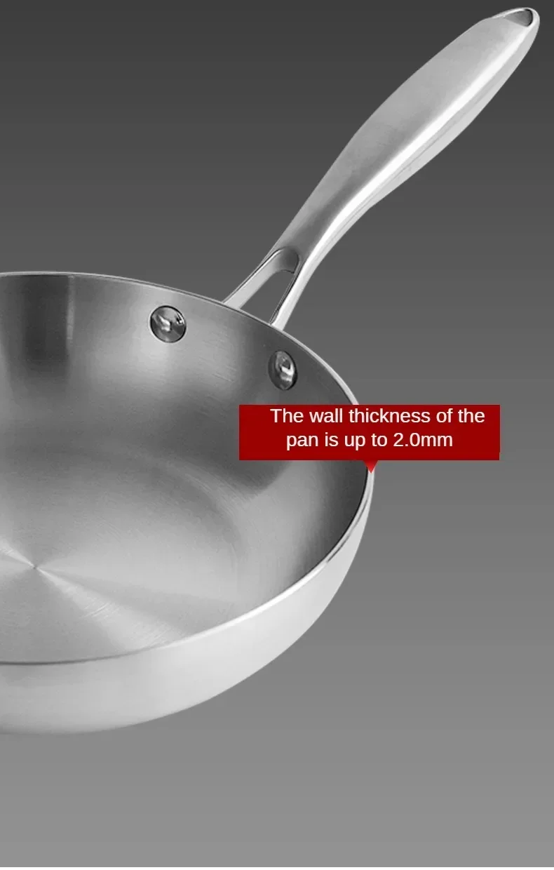 ●11 inch stir fry pan made of stainless steel, nonstick cookware interior is High quality 304 stainless steel material, achieve separation state nonstick.