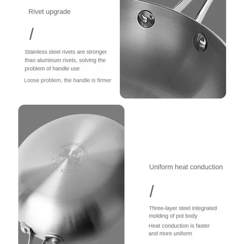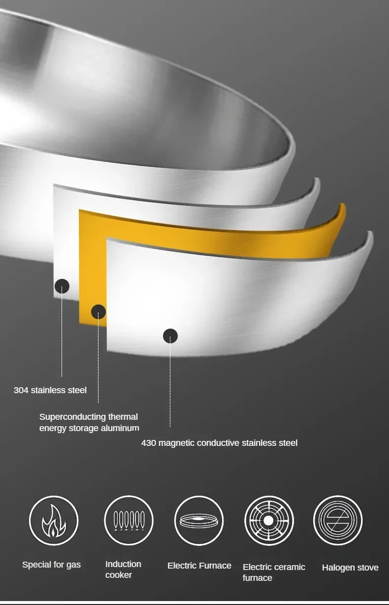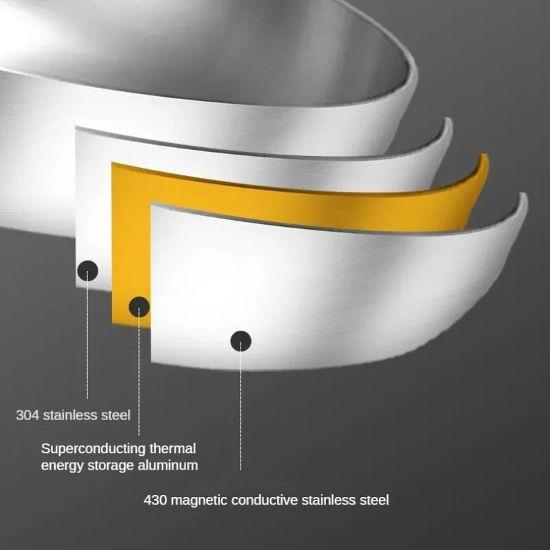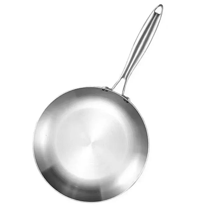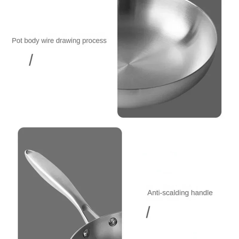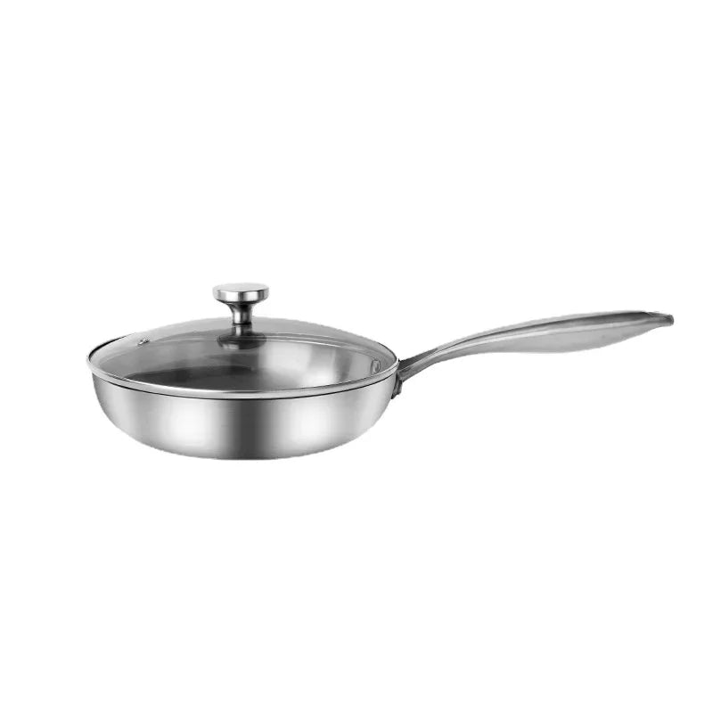 ●11 inch stir fry pan made of stainless steel, nonstick cookware interior is High quality 304 stainless steel material, achieve separation state nonstick.