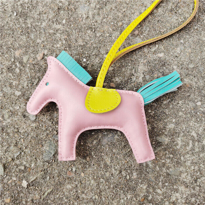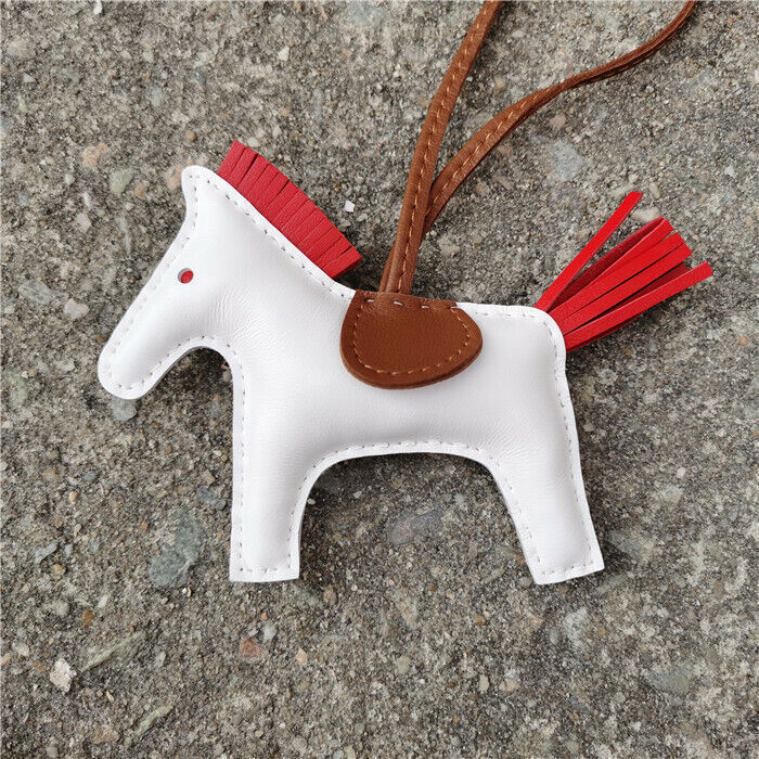 Genuine Leather Horse Bag Charm Hanging Key Ring Purse Accessories Keychain