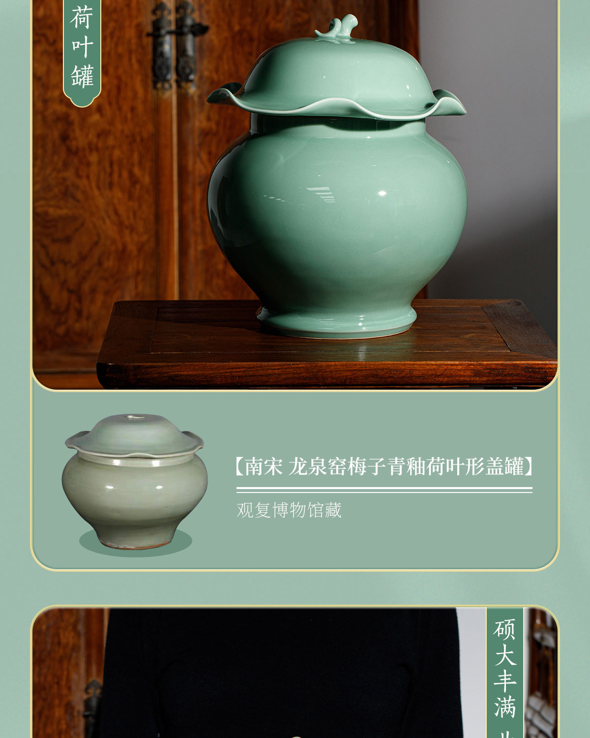 Guanfu Museum Recommended Guanfu Longquan Green Reward-Longquan Zi-Qing Mei Lotus Leaf Pot Antique Celadon Handmade Handmade Orn