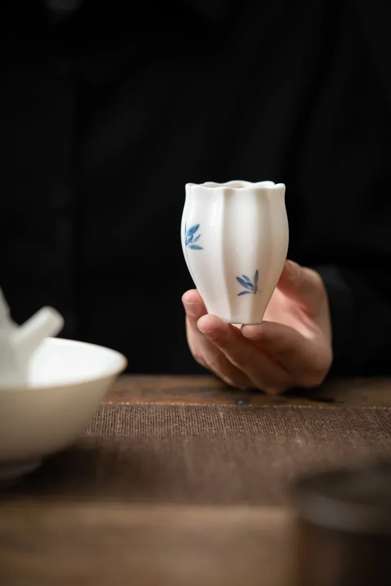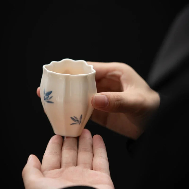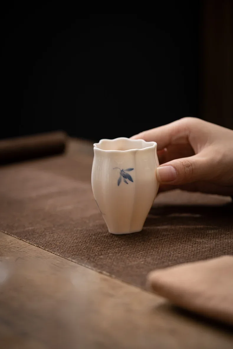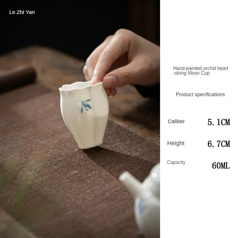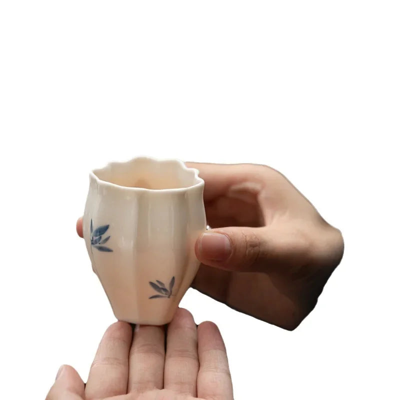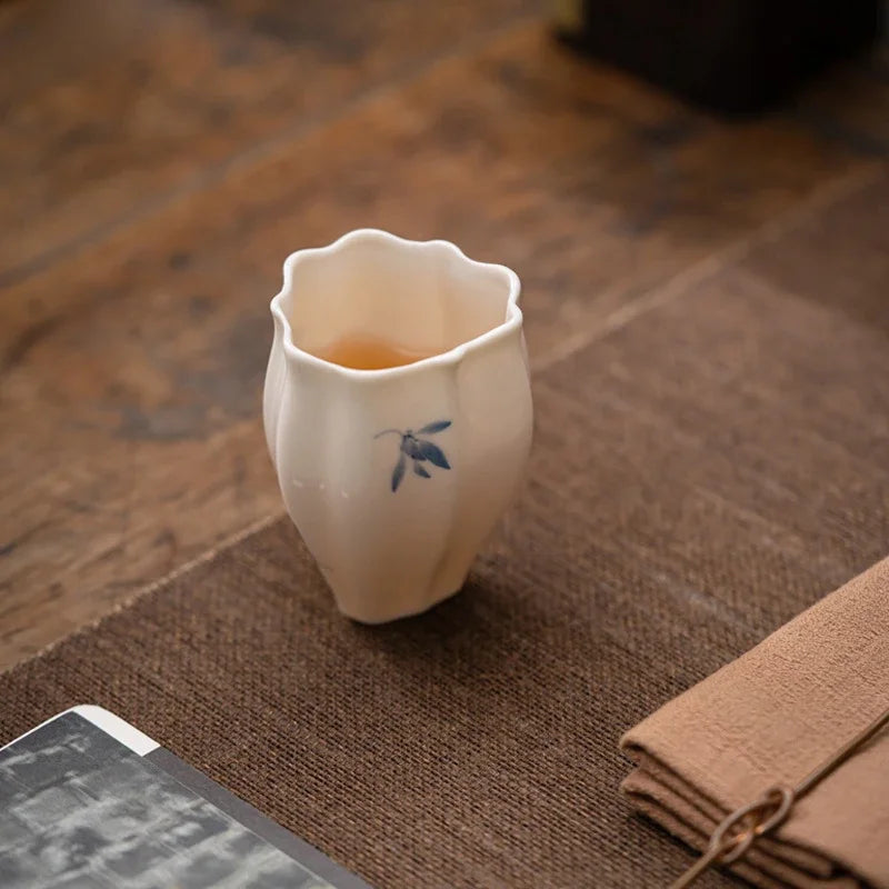 Hand Drawn Phalaenopsis Tea Cup Single Drinking Host Simple Household Ceramic Kung Fu Set Cups Teaware Kitchen Dining Bar Home
