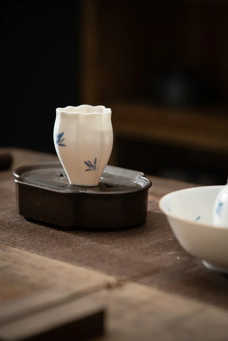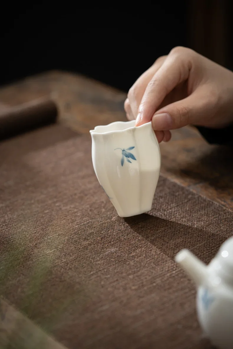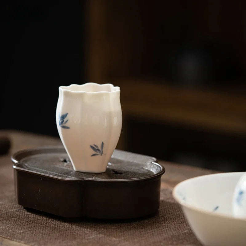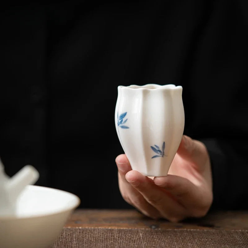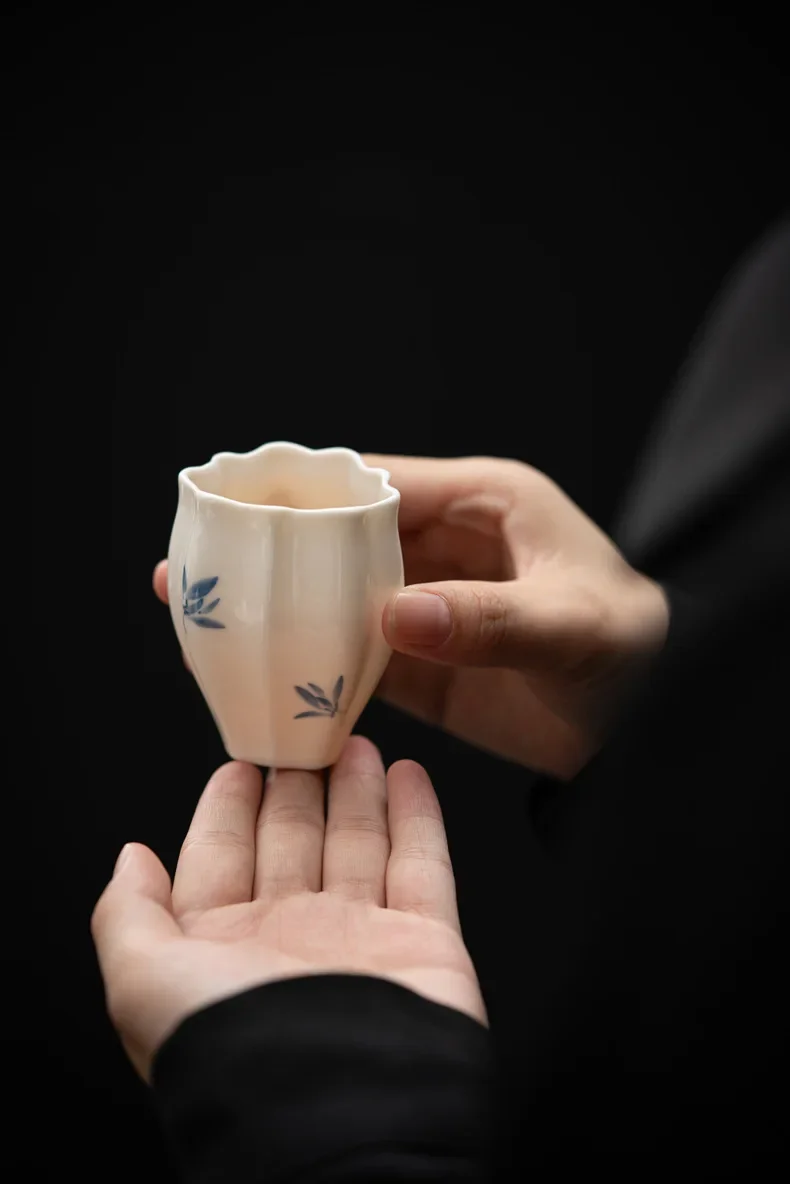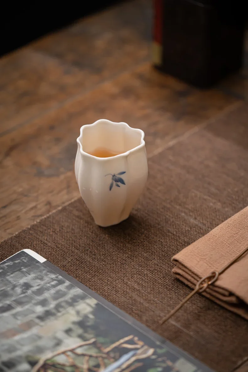 Hand Drawn Phalaenopsis Tea Cup Single Drinking Host Simple Household Ceramic Kung Fu Set Cups Teaware Kitchen Dining Bar Home