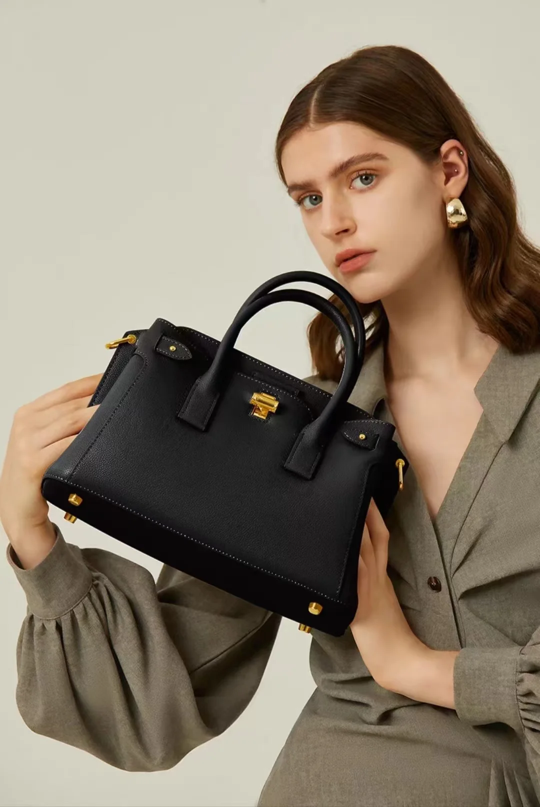 Handheld Kelly Leather Bag for Women, Large Capacity Platinum Bag, Single Shoulder Crossbody, Official, New Trendy, New, 2024