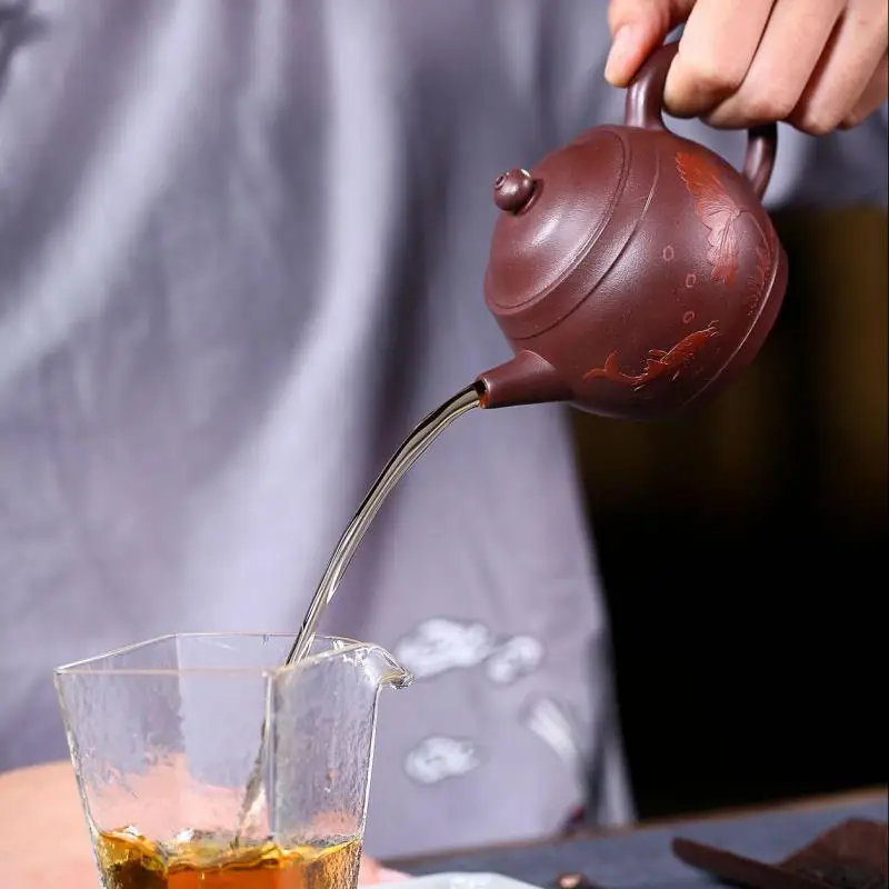 Raw ore purple mud fish fun ball teapot