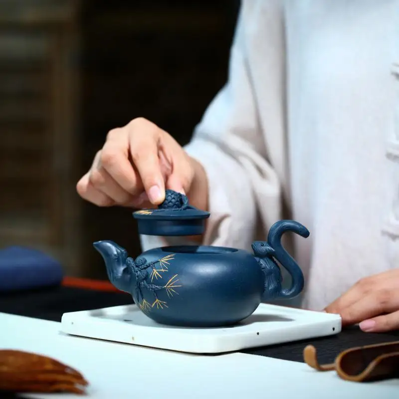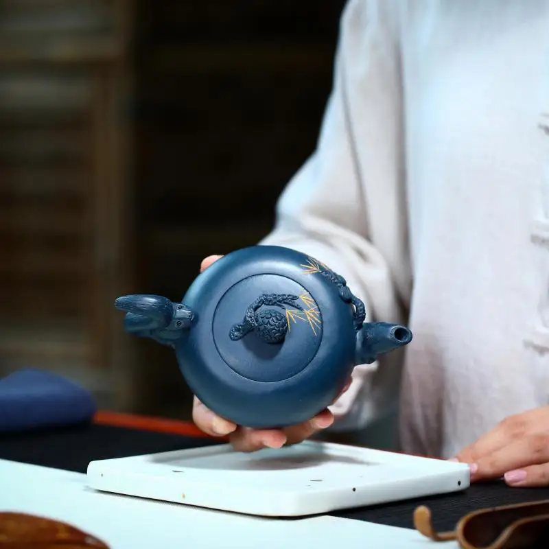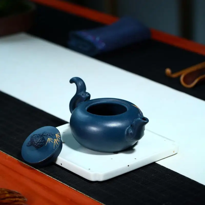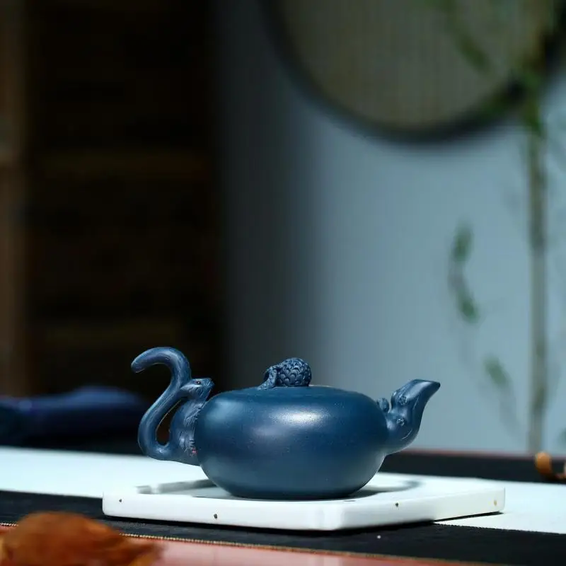 Azure Clay Squirrel Grape Pot Purple Clay Pot Yixing Handmade Teapot Zisha Kung Fu Tea