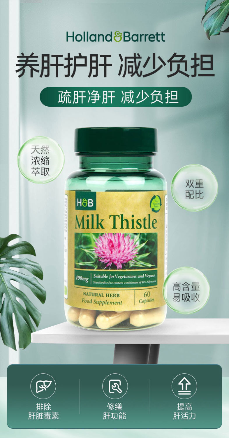 HB Milk Thistle Grass Capsules Health Care Tablets 100mg * 60 Capsules/ Bottle