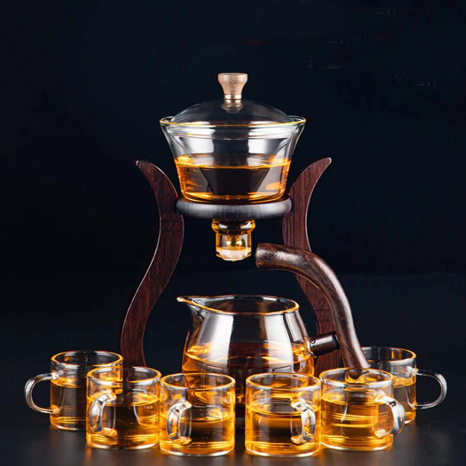 Heat-Resistant Glass Tea Set Magnetic Water Diversion Rotating Cover Bowl Automatic Tea Maker Lazy Kungfu Teapot Drinking