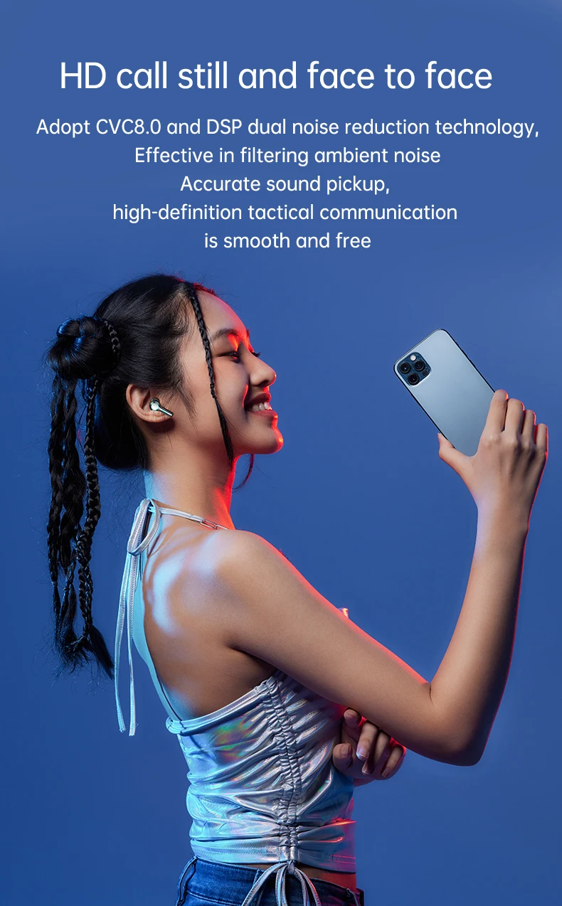 Noise canceling microphone: tws wireless headphones are equipped with noise canceling microphone to block out background noise for natural listening experience, which also can improve the quality of your singing.